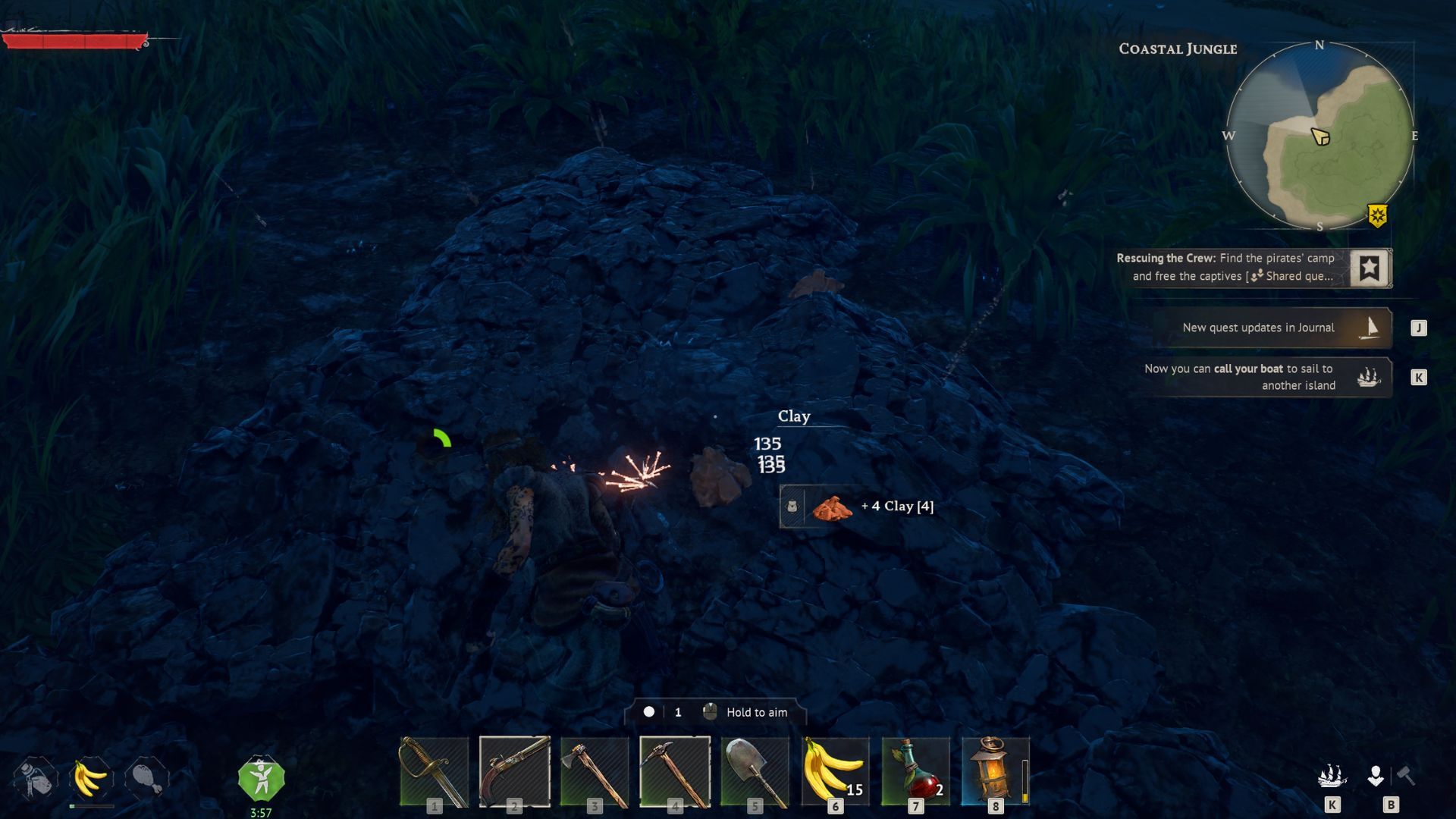 You can find clay by searching for large patches of muddy, brown rock, usually close to the island shores. You won’t have to go far inland to collect it.