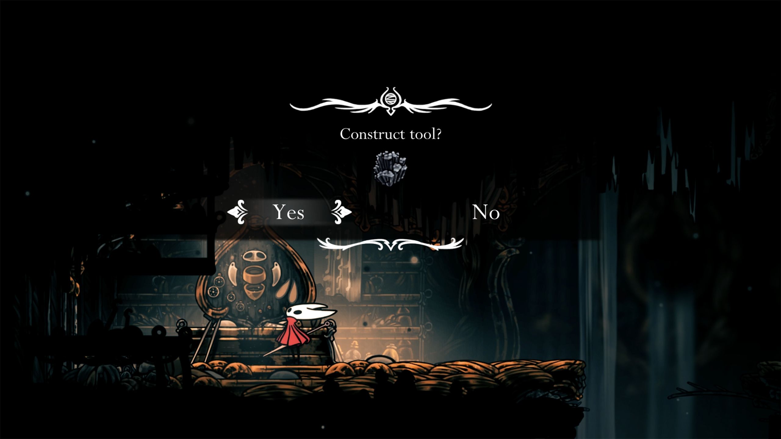 3. You’ll find the tool at the end of the path in the left room. Once you step inside, inspect it and assemble it with Craftmetal. Whenever you feel like resting, ensure your Cogfly is equipped for battles. Furthermore, players can combine their flying companions obtained during the Rite of the Pollip quest to inflict venom and deal extra damage.