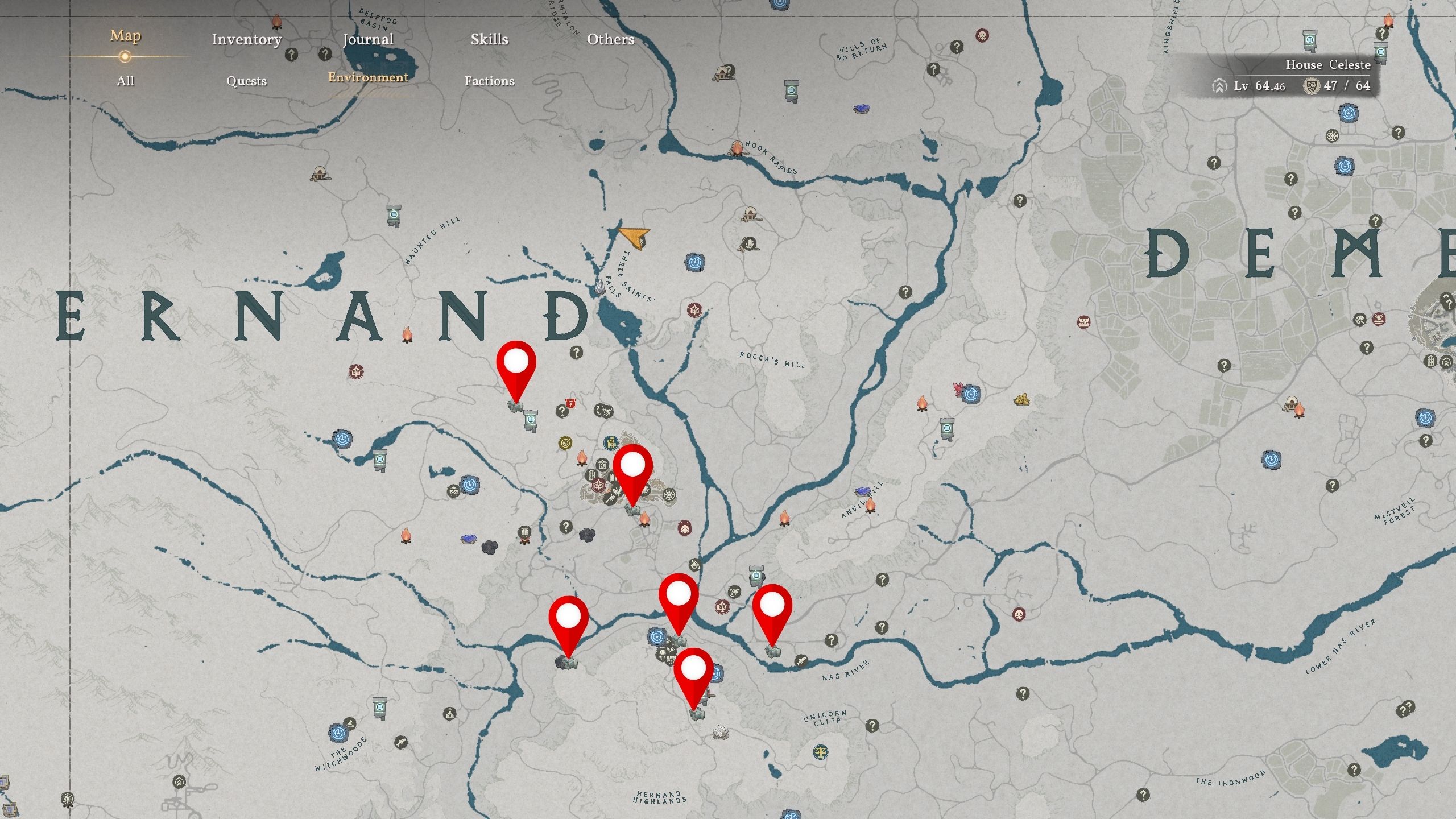You can find copper ore on the sides of mountains in the Crimson Desert. Look for the greenish-blue veins – they’re easy to spot. The map shows most of the copper ore locations, especially around Hernand City. A good place to start mining is the group of ore nodes near the Howling Hill Greymanes camp.