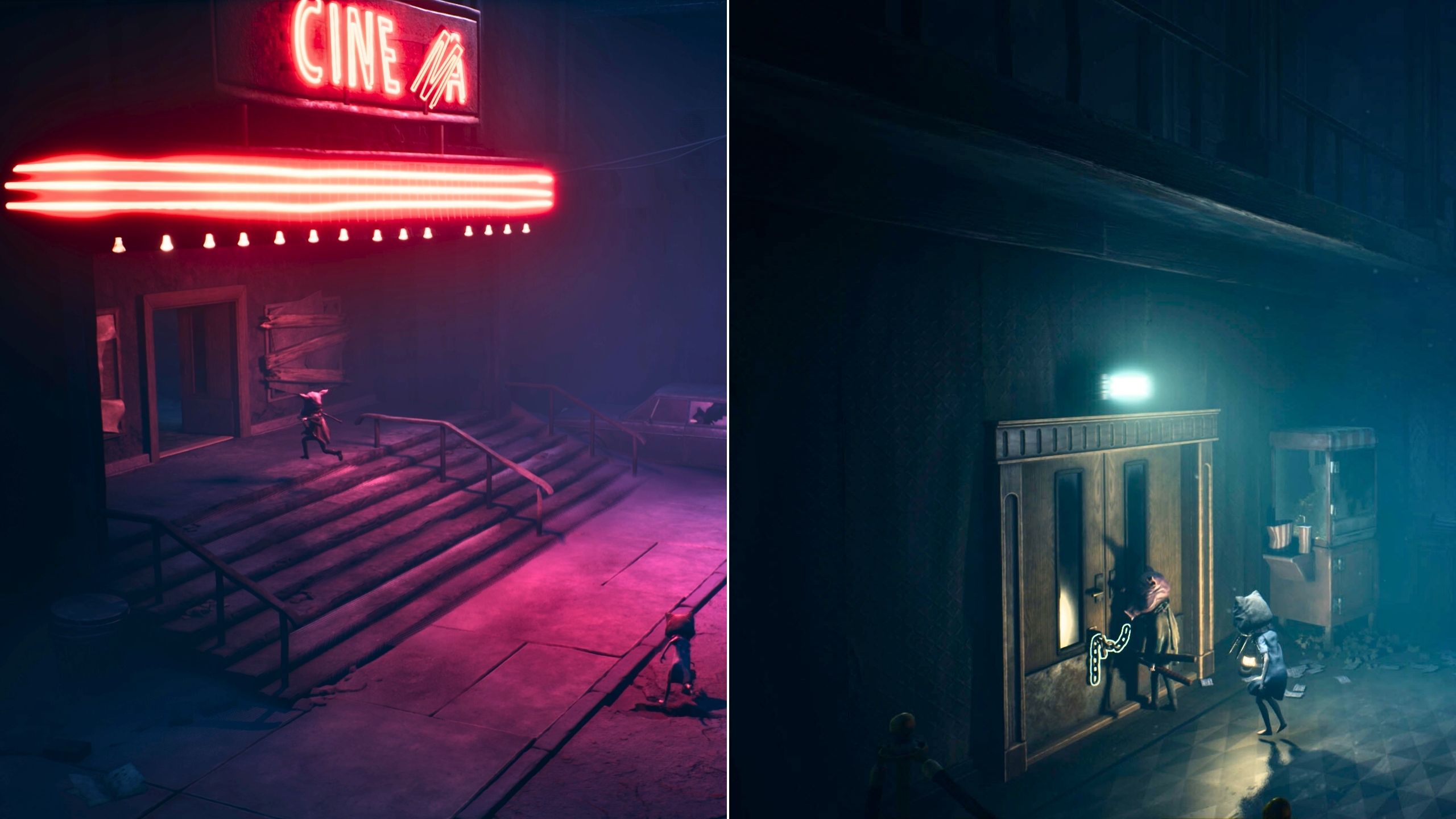 As you carefully make your way through the seats, Sniffer will go into the room and unlock a door on the left. After it’s finished, go through that door to enter the Cinema’s hallway. Continue straight towards the exit, which will lead you to the alley behind the Cinema.