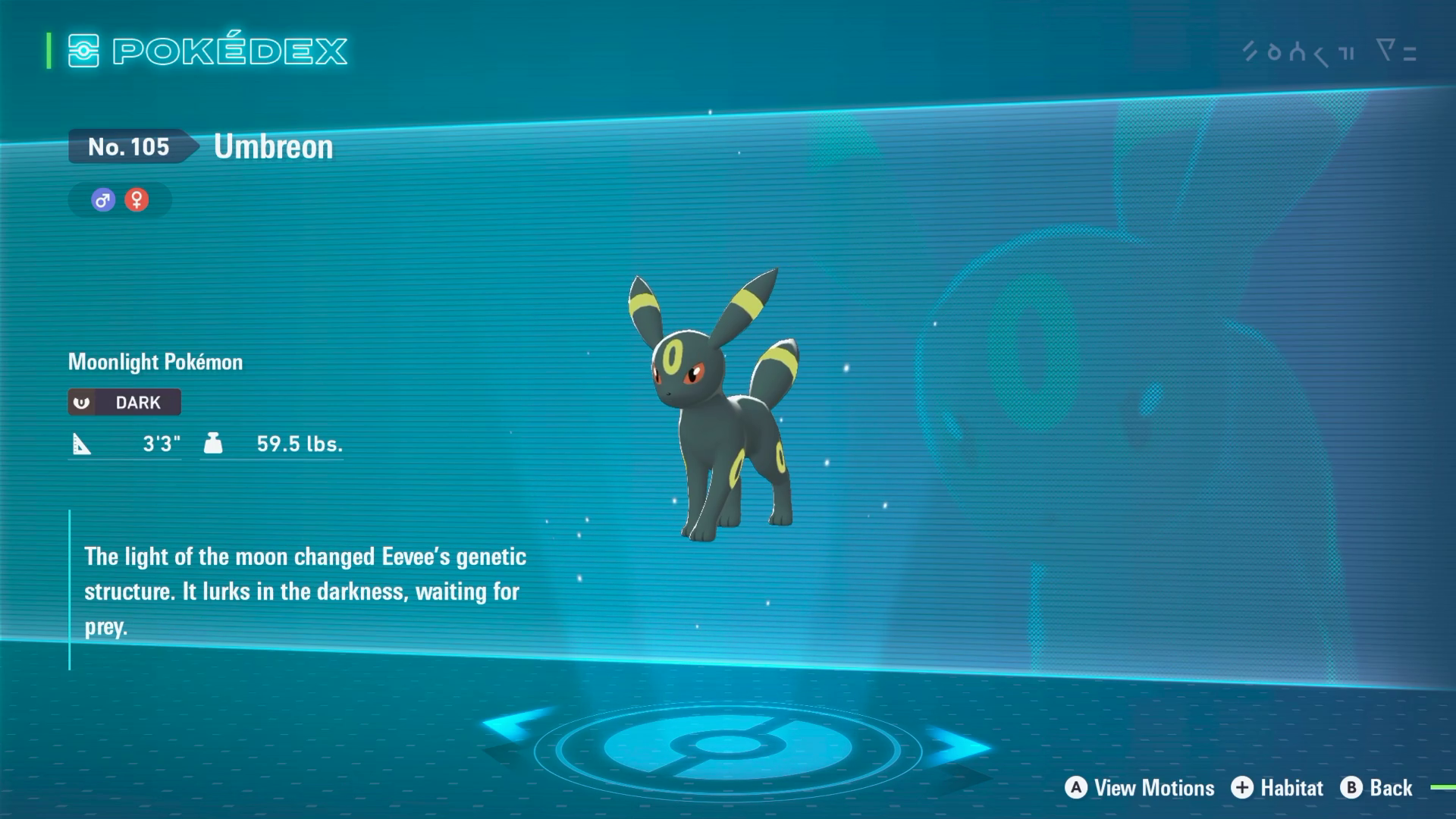 If you want your Eevee to evolve into Umbreon, make sure it doesn’t know any Fairy-type moves, such as Disarming Voice. If it does, it will evolve into Sylveon instead. You can teach your Pokémon different moves through the main menu.