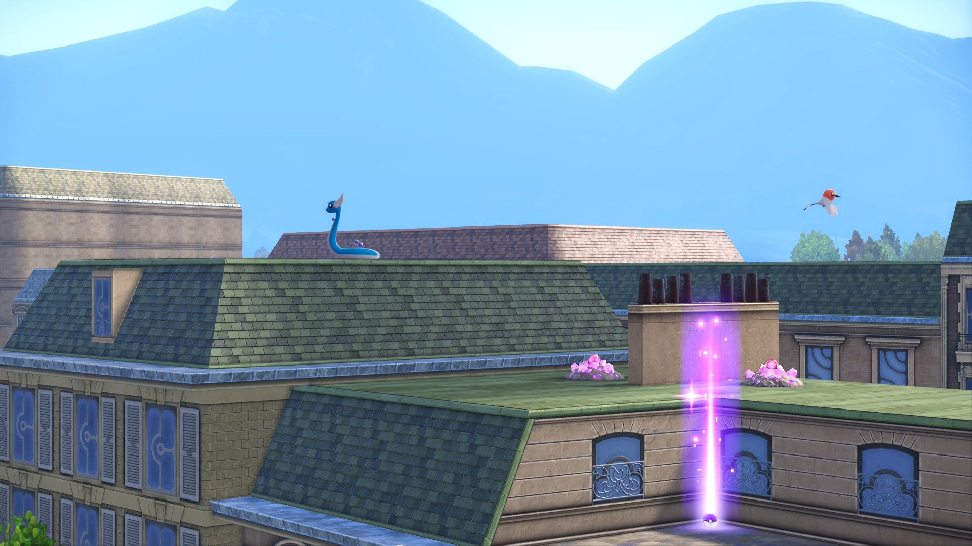 To find Dratini, first climb the ladder to the tall building beside Restaurant Le Nah. Then, dodge roll across the gap to get onto the restaurant’s roof. You’ll see two Fletchlings, and Dratini will be right behind them.