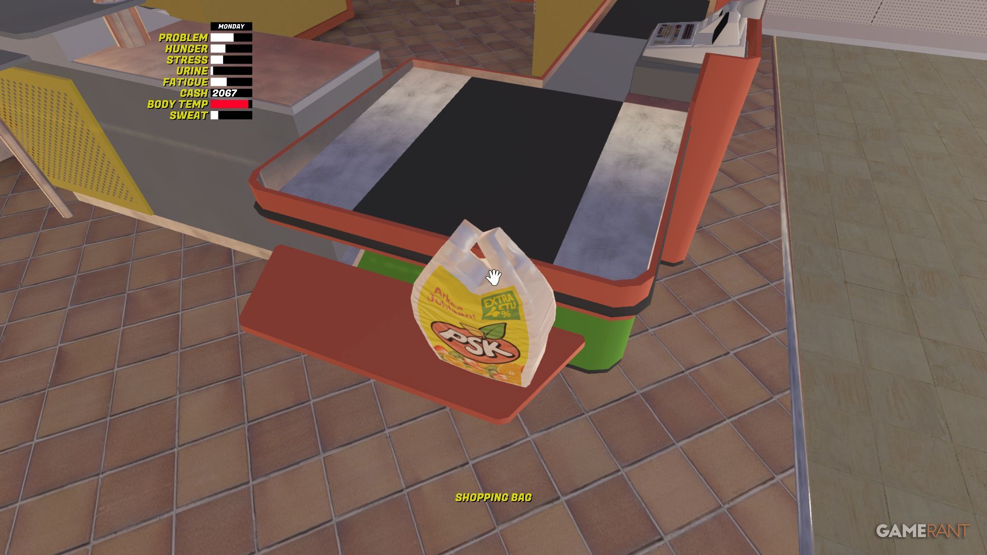 To open a shopping bag, hold down the ‘F’ key while your cursor is over it. It’s usually best to do this at home, specifically in the kitchen, but you can open it immediately if you just bought one thing and want to eat it right away.