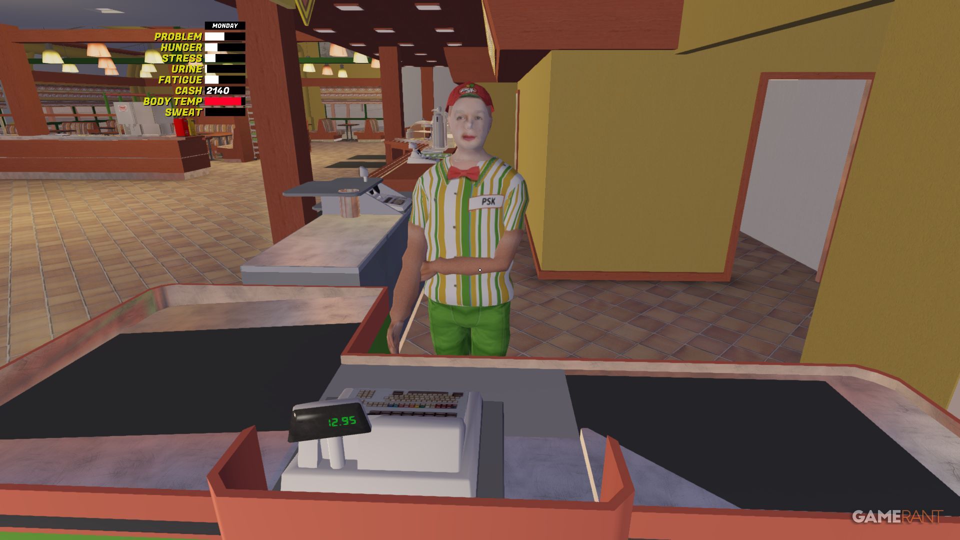 When you’re really hungry inside the supermarket, go to the fast food section. Choose what you want from the menu signs above. An employee will take the order to the back to prepare it, and then bring out your drink and fries, placing them on the tray. After a short wait, they’ll return with your burger and put it on the tray as well.