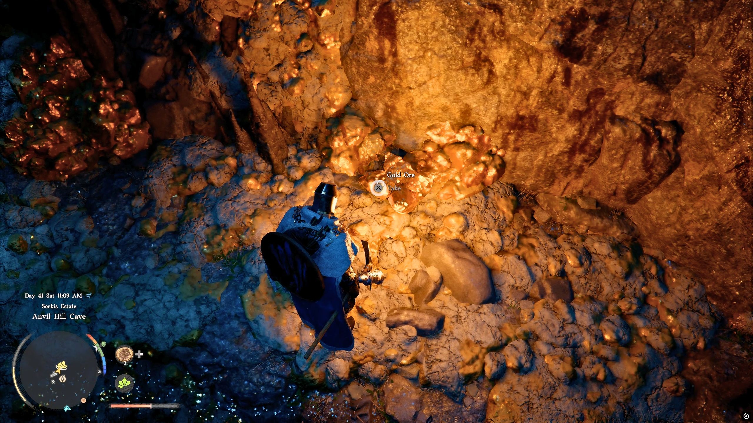 Be careful when you enter the cave – you’ll find a few Stoneback Crabs there. Deal with them first, then use your pickaxe to mine all the Gold Ore you can find in Anvil Hill Cave.