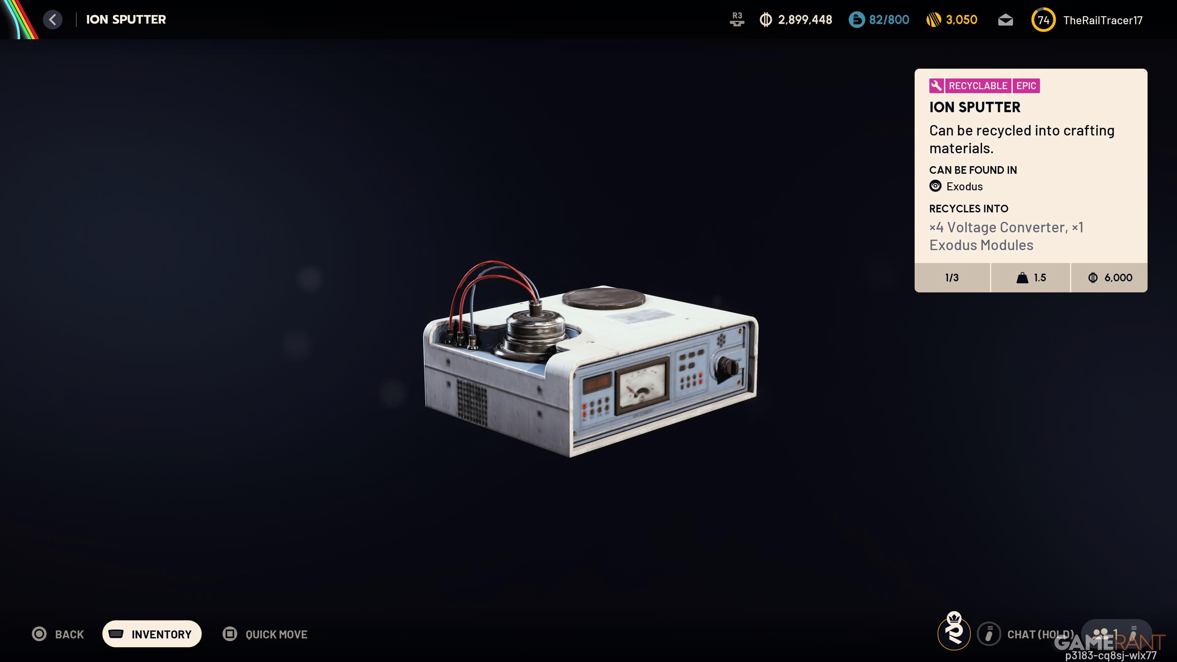 Ion Sputter sells for 6,000 and can be broken down into 4 Voltage Converters and 1 Exodus Module. You can find it in Exodus locations, with the Stella Montis map being the most reliable place to search. Once your run begins, head to either the Business Center or Assembly, depending on your starting location on the map.