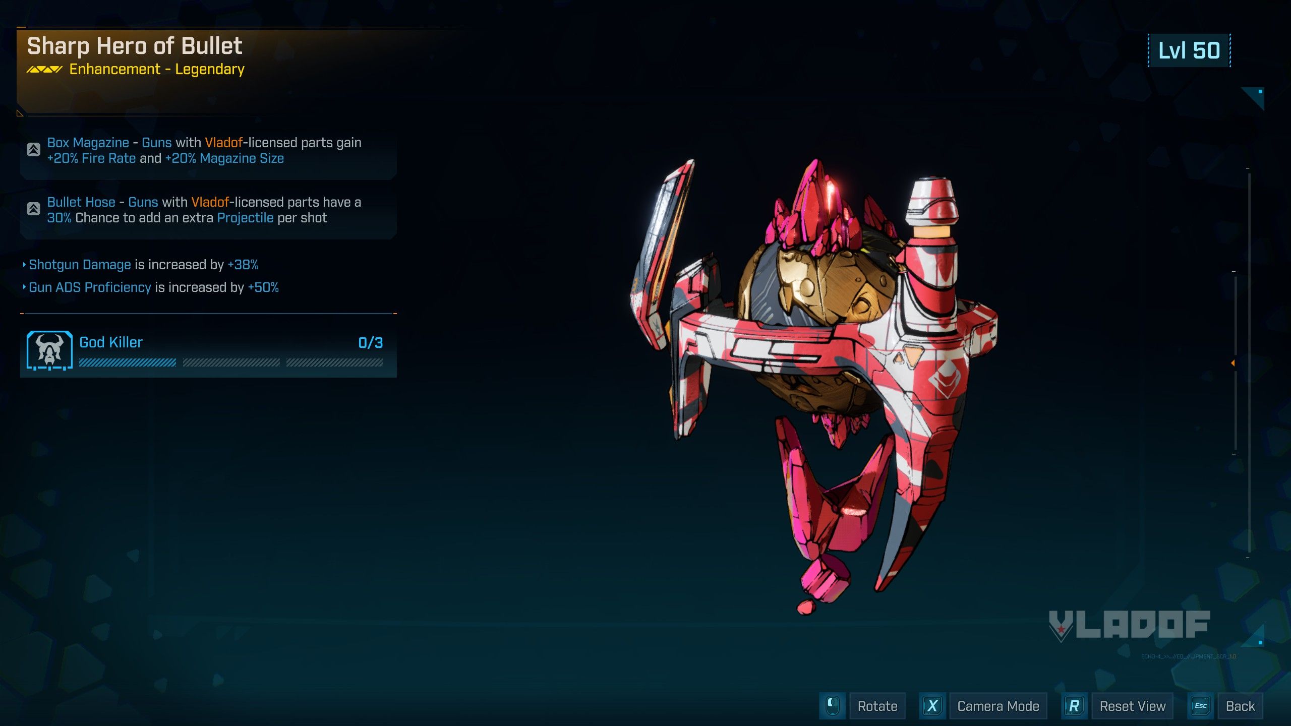 Vladof | Box Magazine – Guns with Vladof-licensed parts gain +20% Fire Rate and +20% Magazine Size Bullet Hose – Guns with Vladof-licensed parts have a 30% Chance to add an extra Projectile per shot |