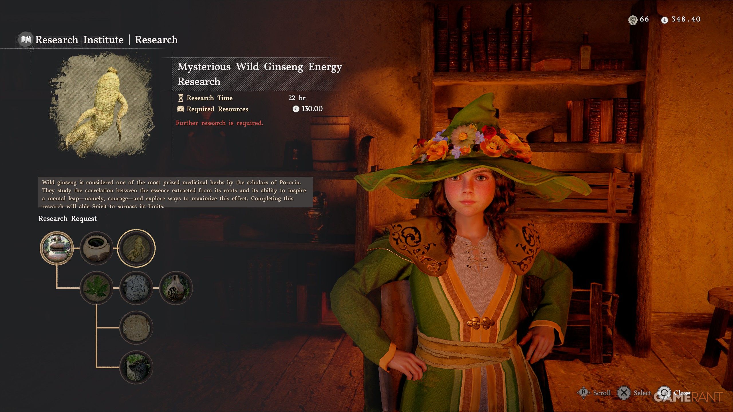 - Return to the Pororin Research Assistant to hand them x1 Wild Ginseng, and then research will resume.