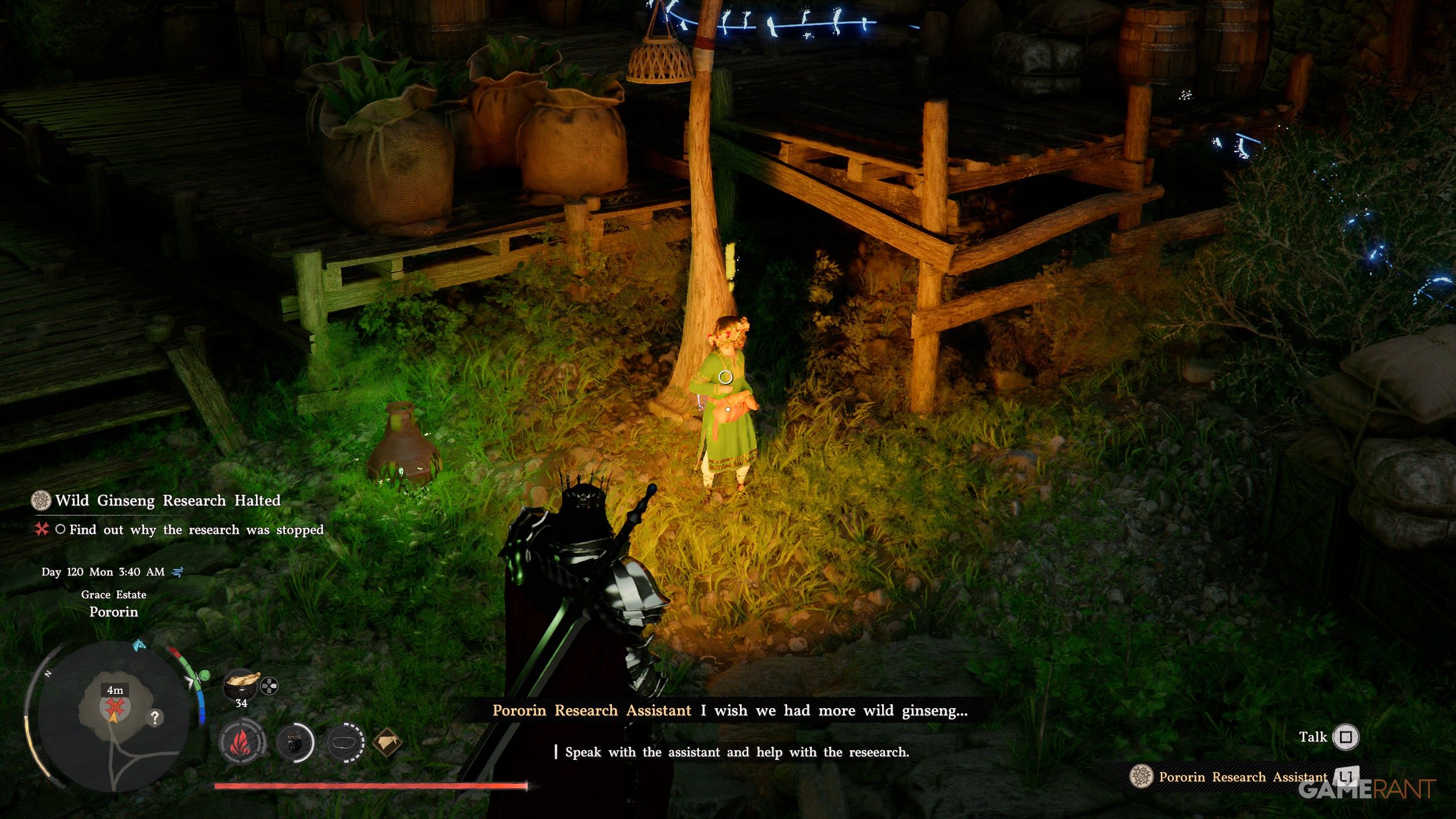 - When progress stops (“Wild Ginseng Research Halted” quest), venture to Pororin to find the Pororin Research Assistant and speak with them.
