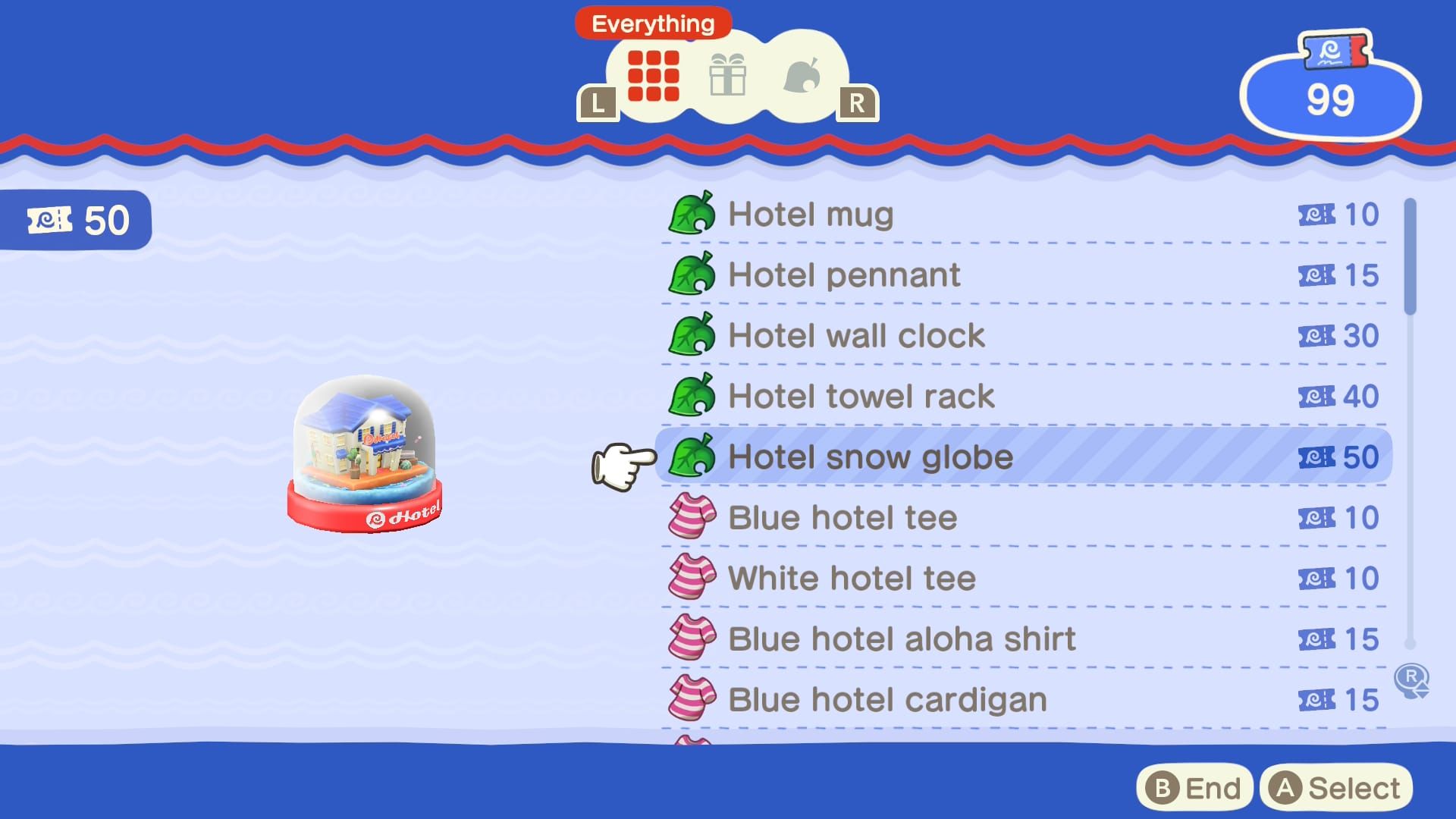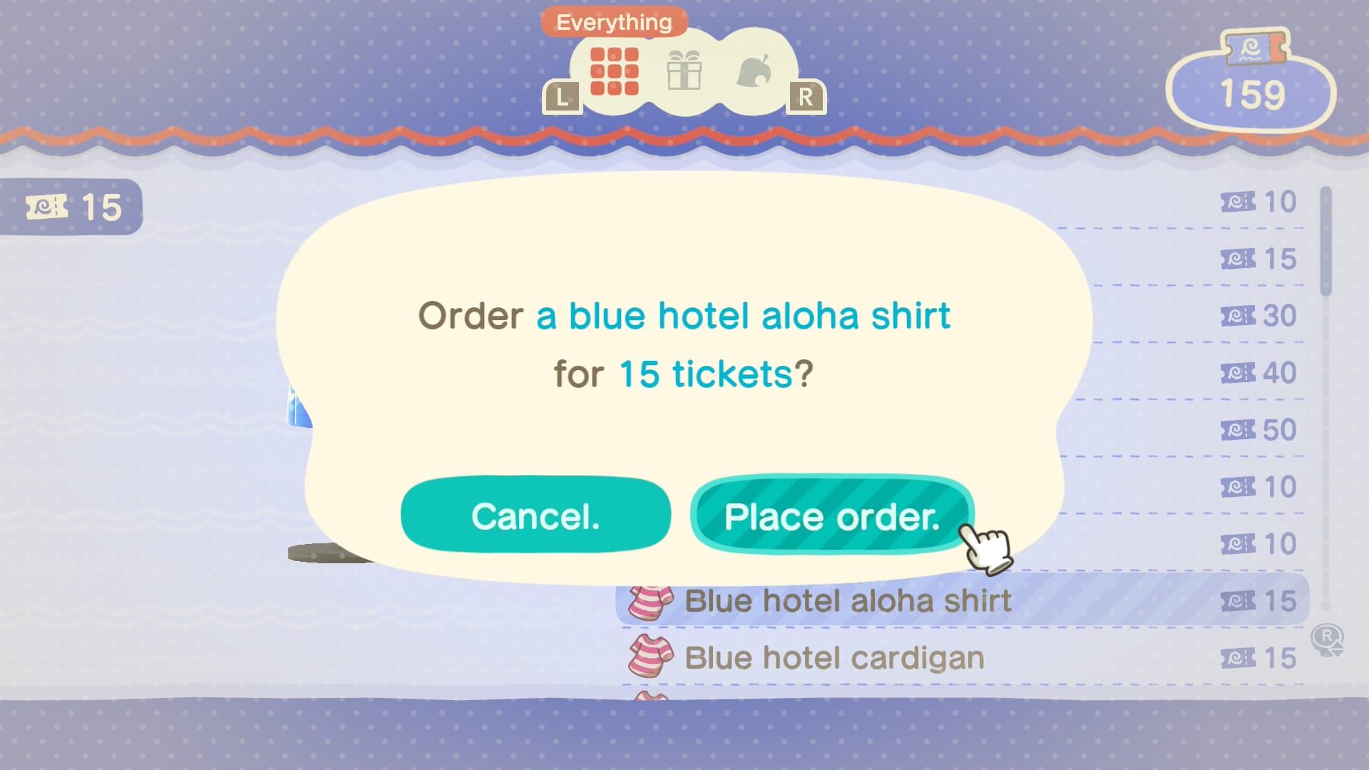 Just like with Nook Shopping, there’s a limit to how many items you can order from the hotel’s souvenir catalog. You can ask Grams to order up to five items each day. But, because this limit applies per player account, you can get more items if you have a second account and log in to it.