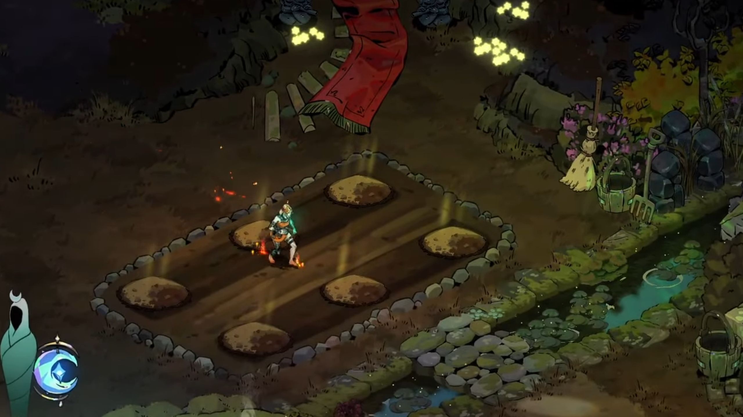 With Plankton in hand, head back to the Crossroads. There, use the Flourishing Soil spell to make some garden plots. You’ll need six Moly to craft these at the Cauldron.