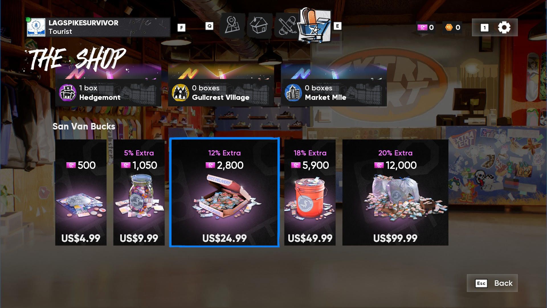 The shop has lots of cool items like outfits, boards, and accessories, but they cost San Van Bucks. This means you’ll need to decide if you want to spend real money to get unique looks in San Vansterdam.