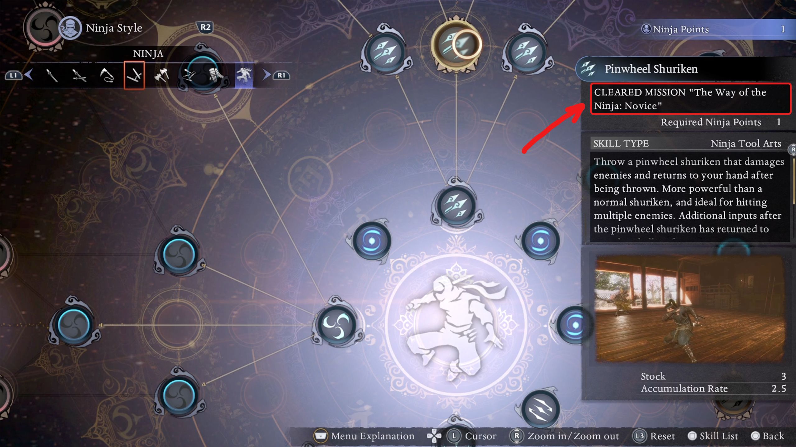 Samurai and Ninja Locks have been updated to Samurai and Ninja Points. Players can use these points to unlock new Martial Arts for Samurai, Ninjutsu for Ninja, or general Common Arts for both. Plus, each weapon now has its own skill tree within the Martial Arts/Ninjutsu menu, allowing players to learn unique attacks.