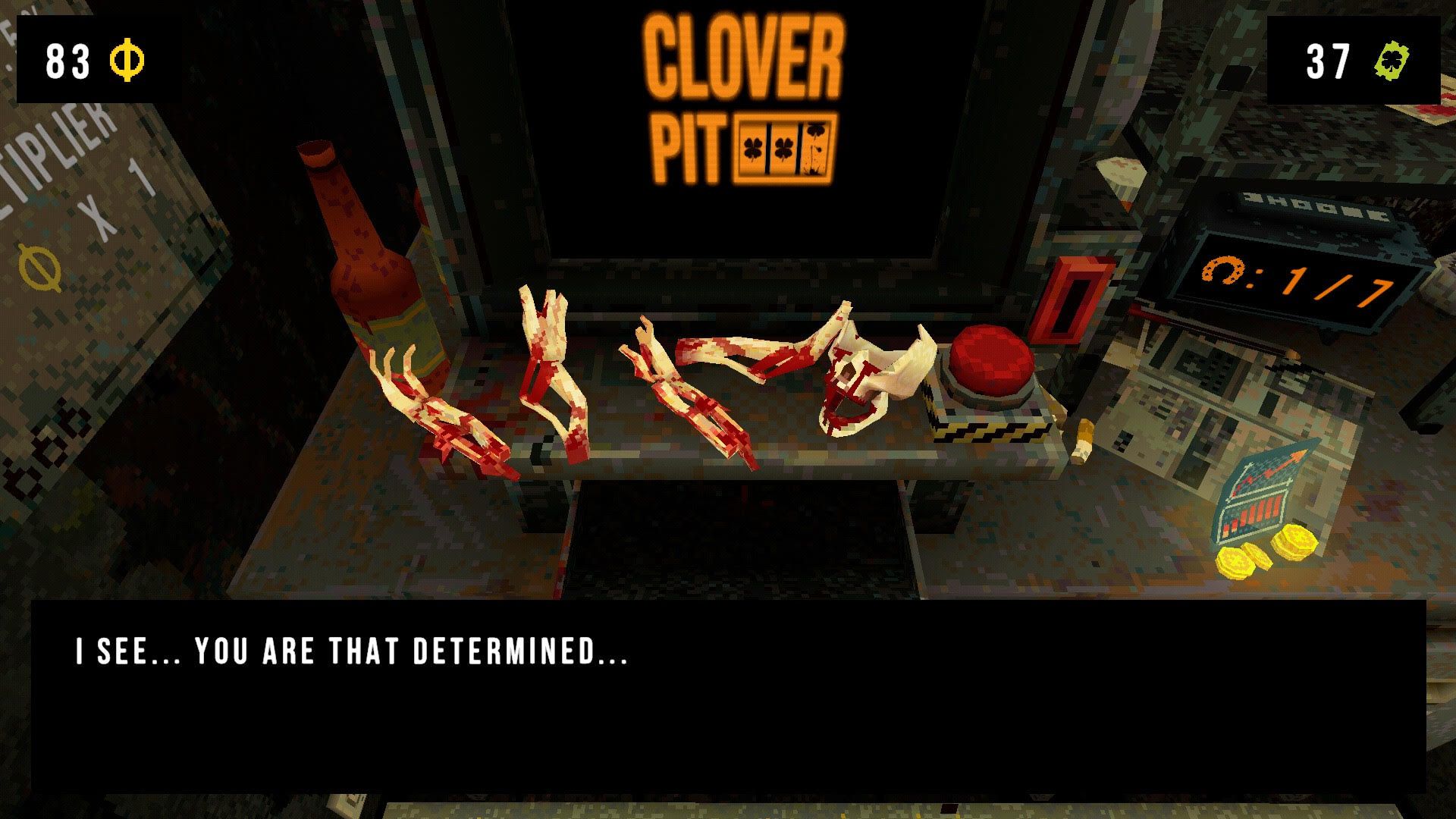 With each corpse part you collect, the Skull will give you a free, random charm. This is a particularly risky, yet highly rewarding strategy that CloverPit has to offer.