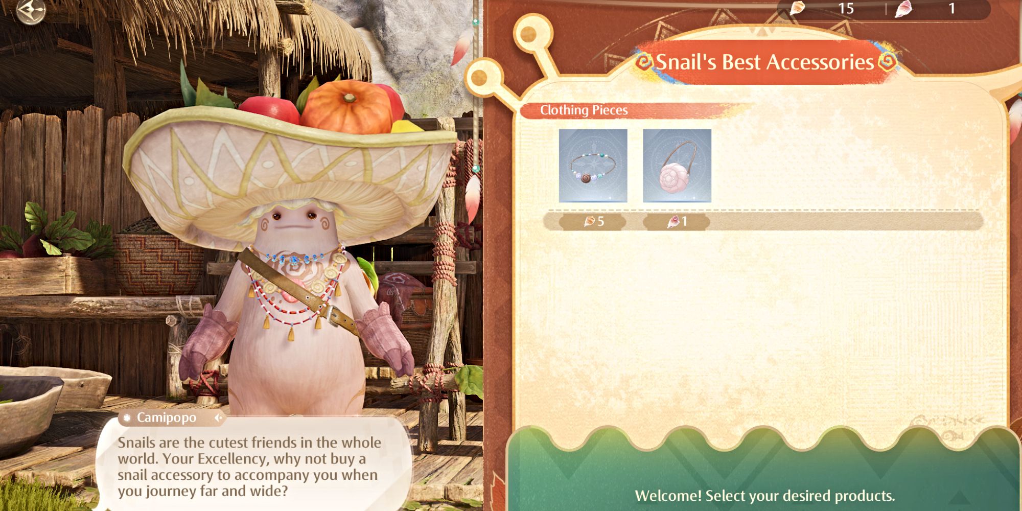 After you collect Sparkling Shell Crystals by feeding snails, you can trade them with specific merchants for goods.
