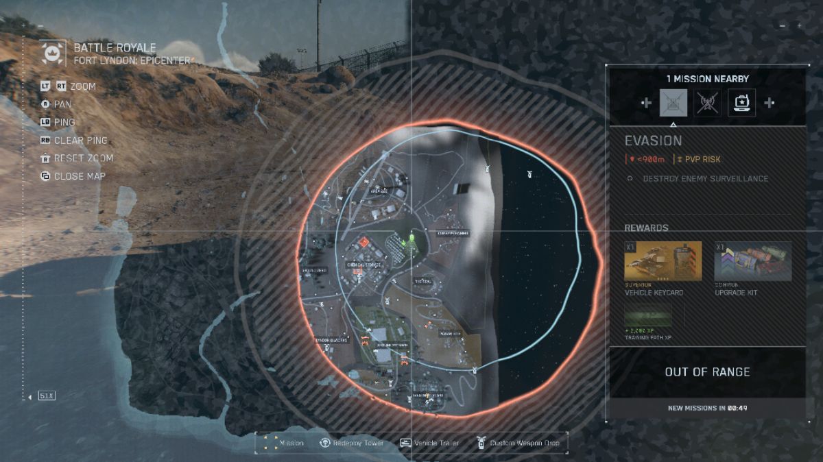 In REDSEC Battle Royale, you’ll occasionally see prompts for nearby missions. Completing these missions is a great way to get valuable rewards and experience, especially when you’re first starting out. The weapons and items you earn from missions are often much better than what you’ll find by searching for loot.