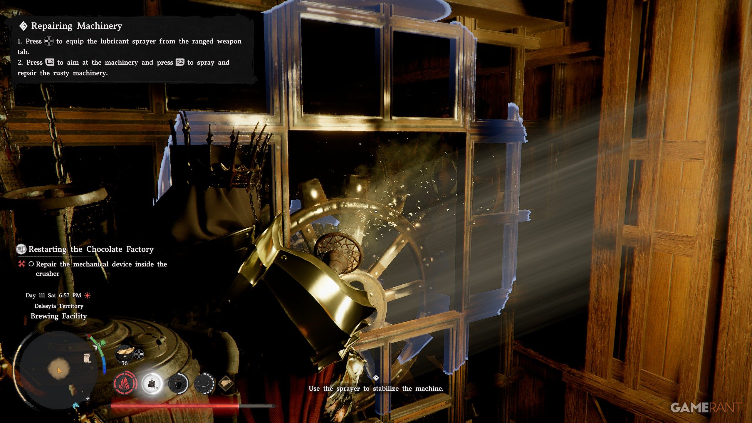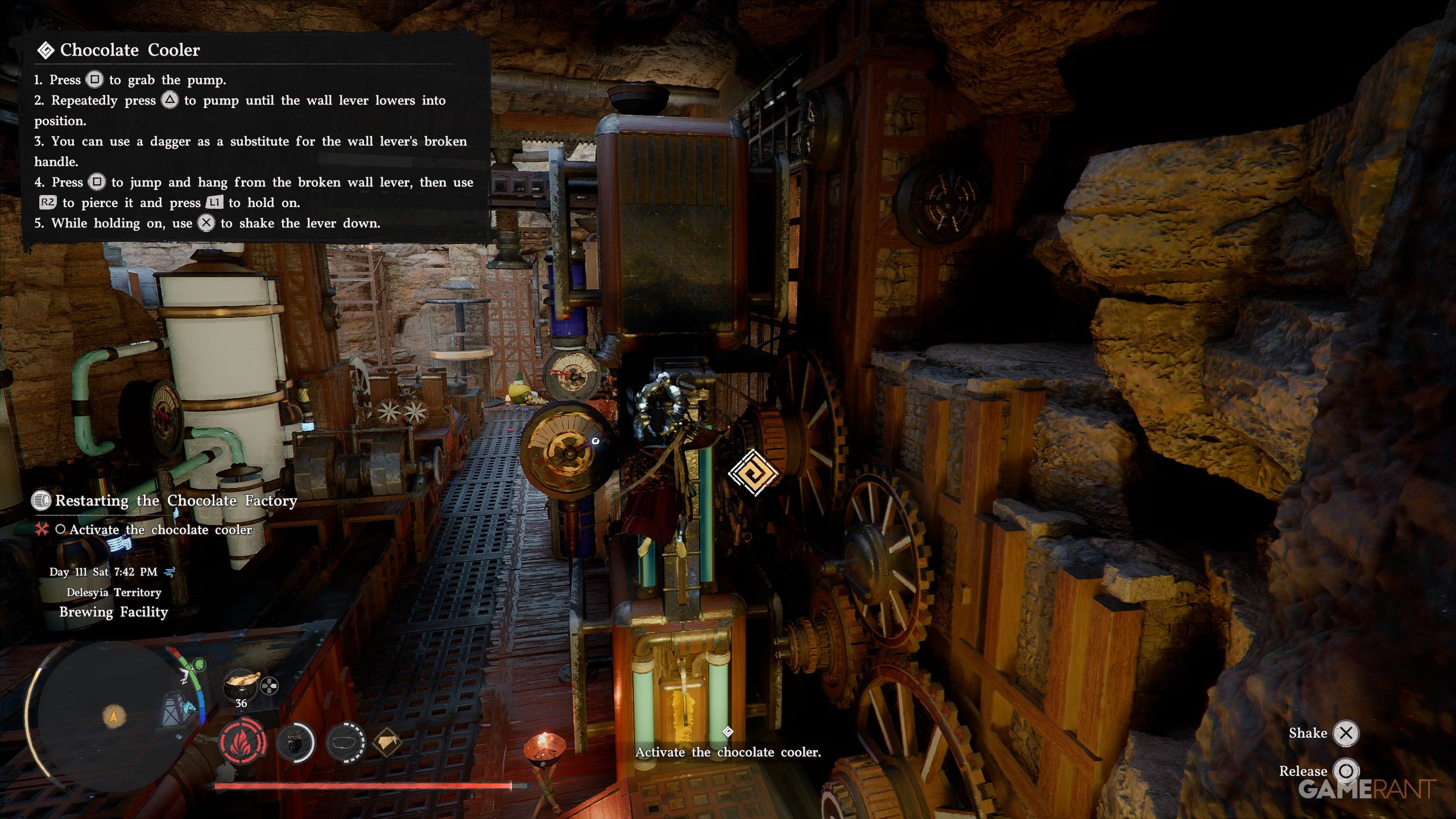 The Gearmelt Factory in Delesyia is a chocolate factory that needs your assistance! You’ll need to clear out the enemies and get the factory working again. If you do, you’ll receive a special chocolate backpack that provides unlimited food.