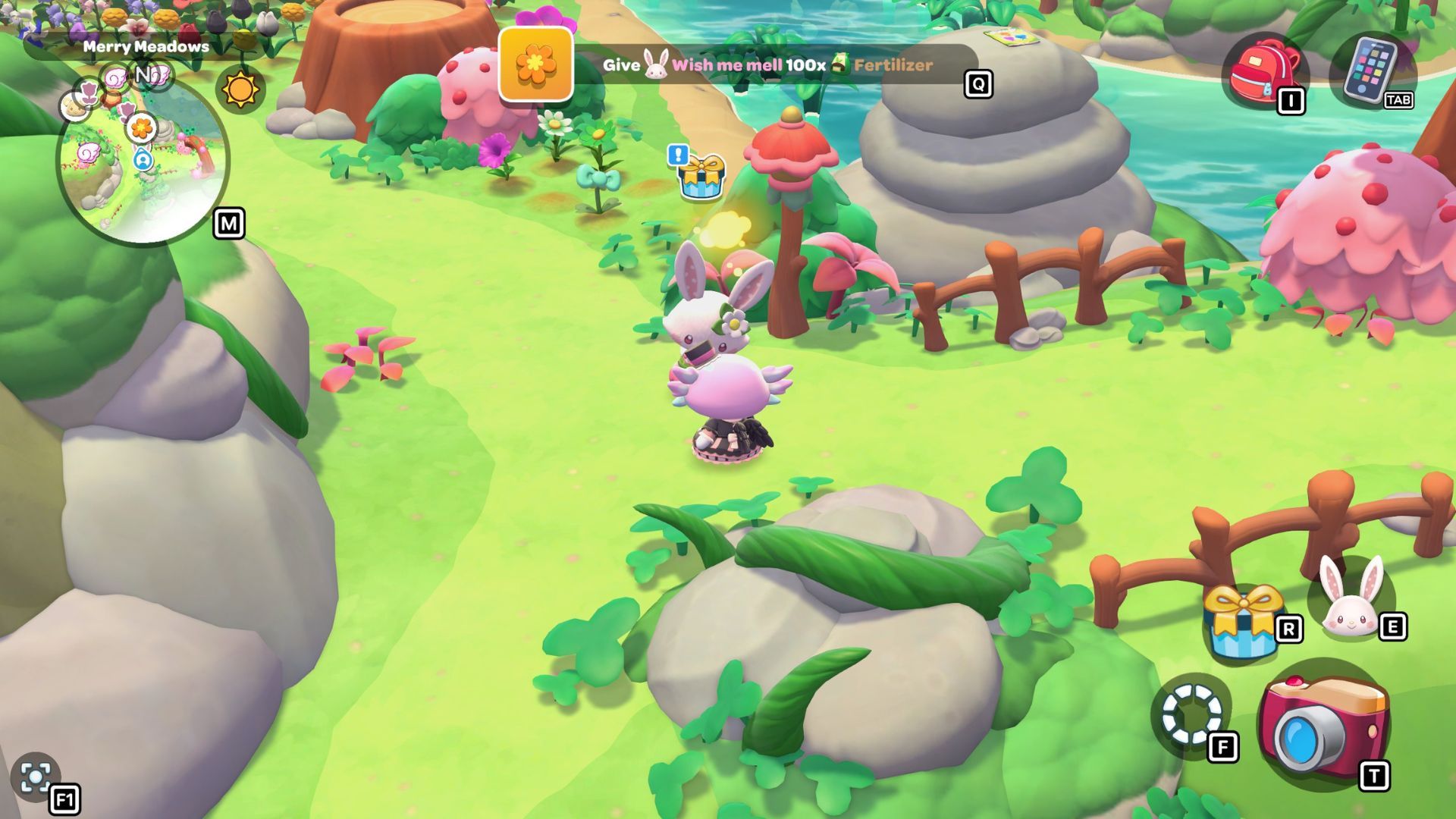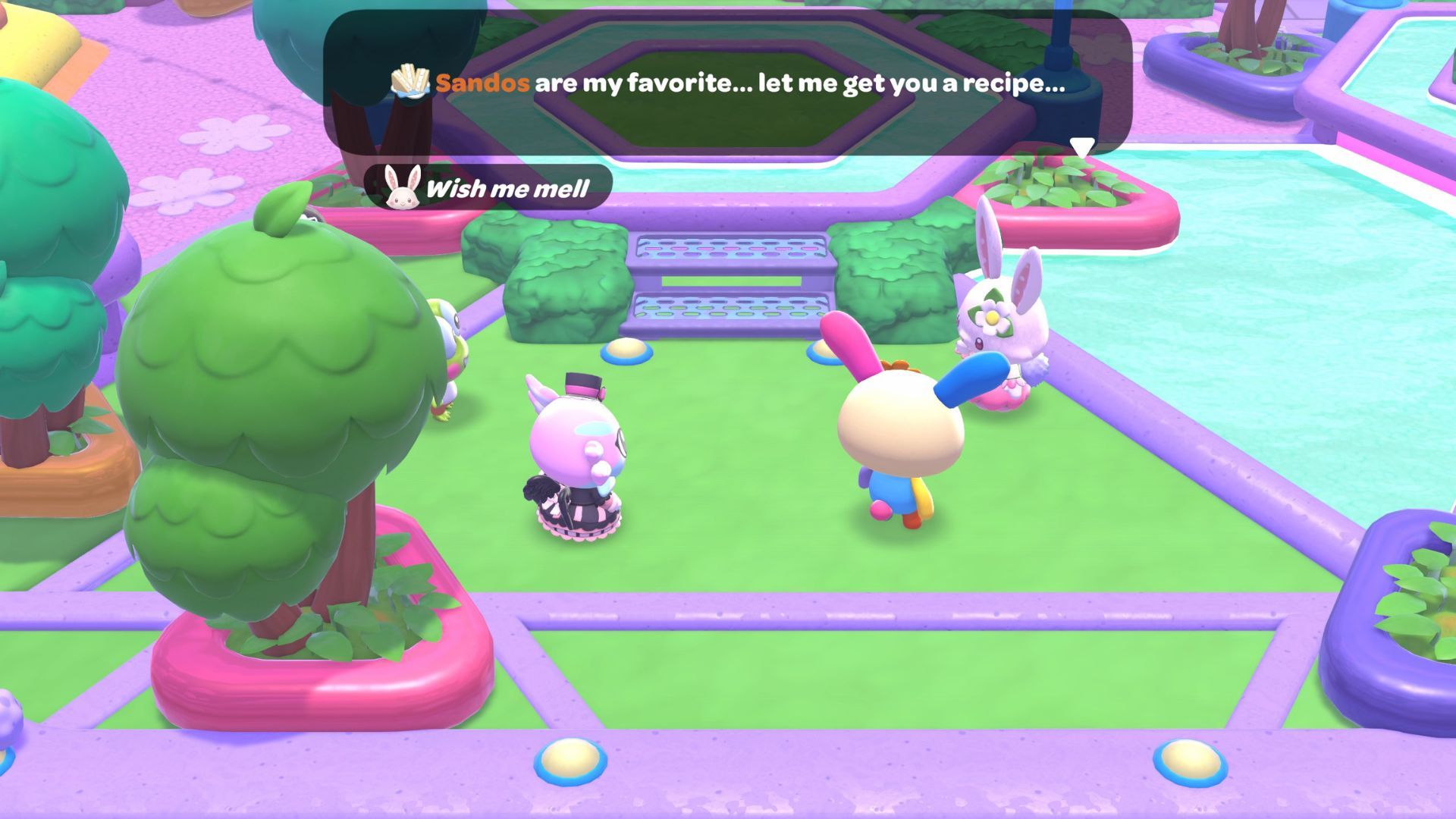Once Keroppi gets to the roof of the Imagination Cafe, he’ll announce it’s the ideal spot for a new orchard. To begin, you’ll need to find some good soil. Head to Merry Meadows and speak with Wish Me Mell to get started.