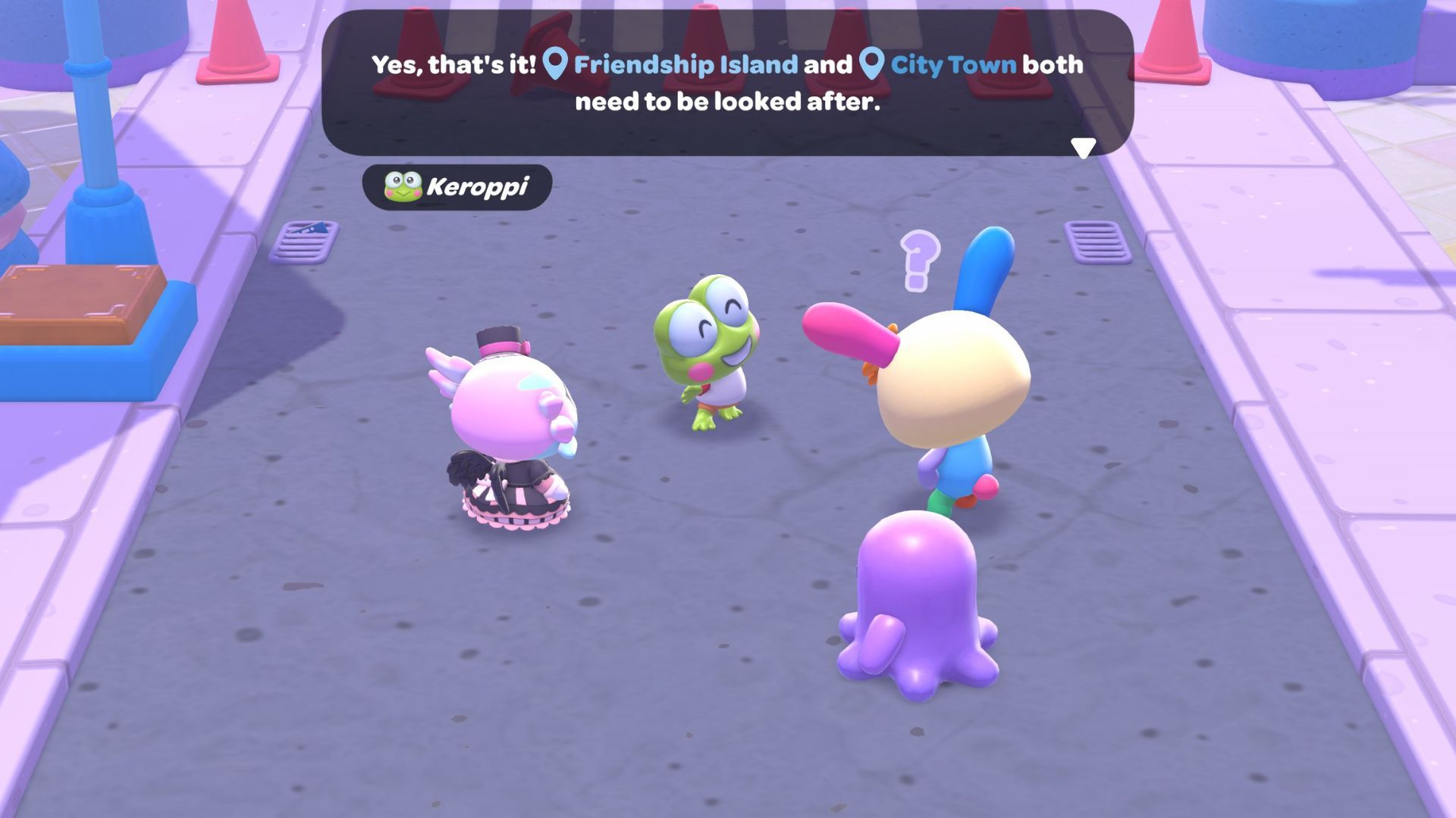 Keroppi is going to City Town, so you need to go there too. Look for him standing near the fog at the edge of town and talk to him. He’ll tell you he feels responsible for taking care of the town, and that will give him an idea. He’ll then start running around all over City Town!