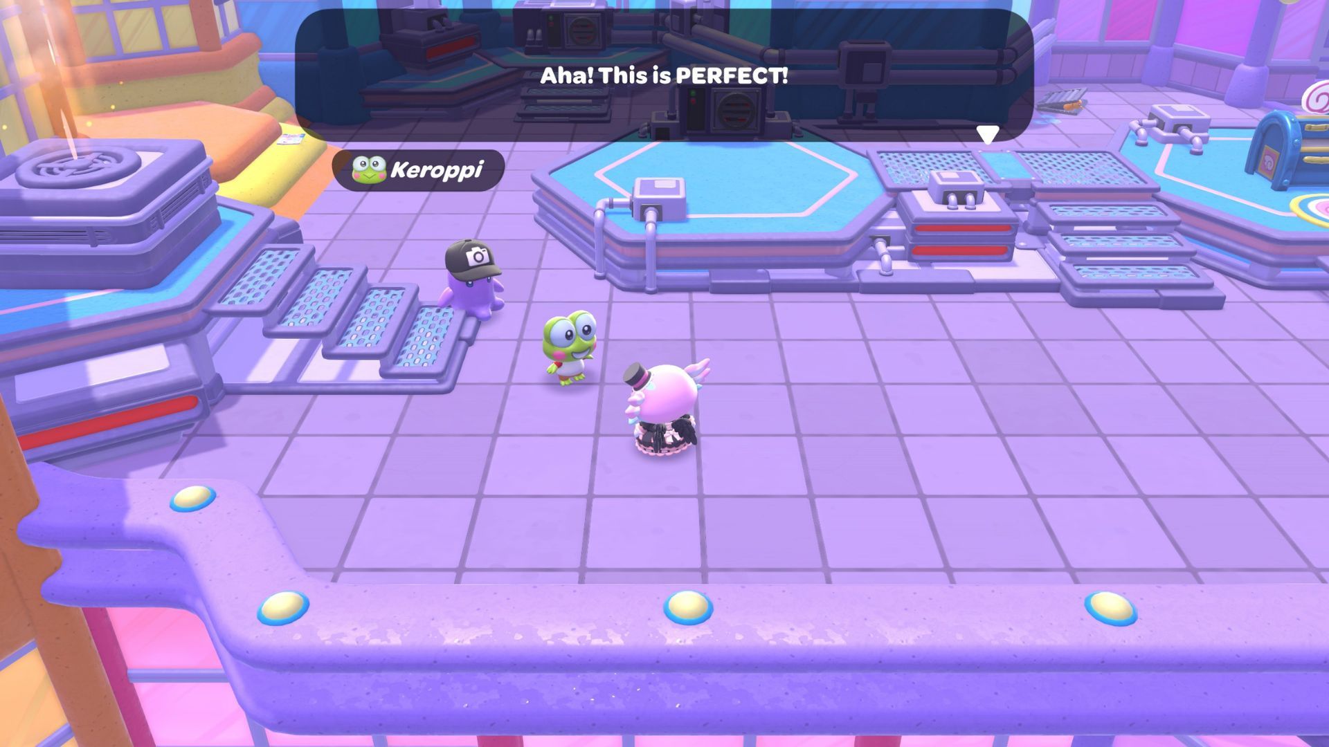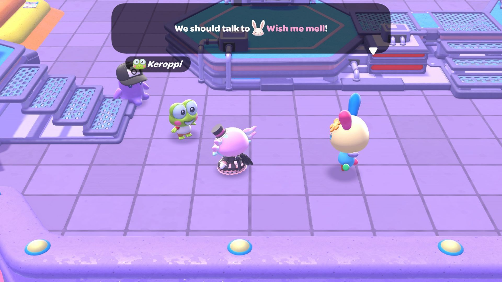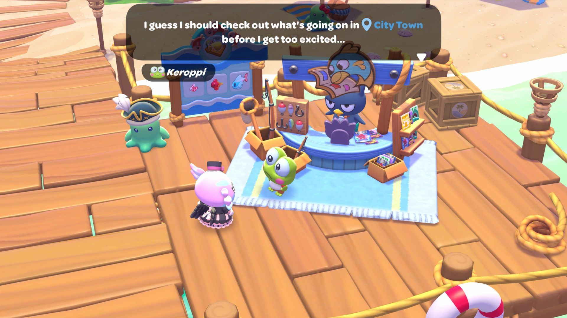 To begin the “Outside the Block” quest, you first need to upgrade the Imagination Cafe to level 8. Once it’s upgraded, talk to Keroppi on the Resort Docks. He’ll tell you he and Badtz-Maru were discussing Usahana opening shops around town, and that he’d like to open one too.