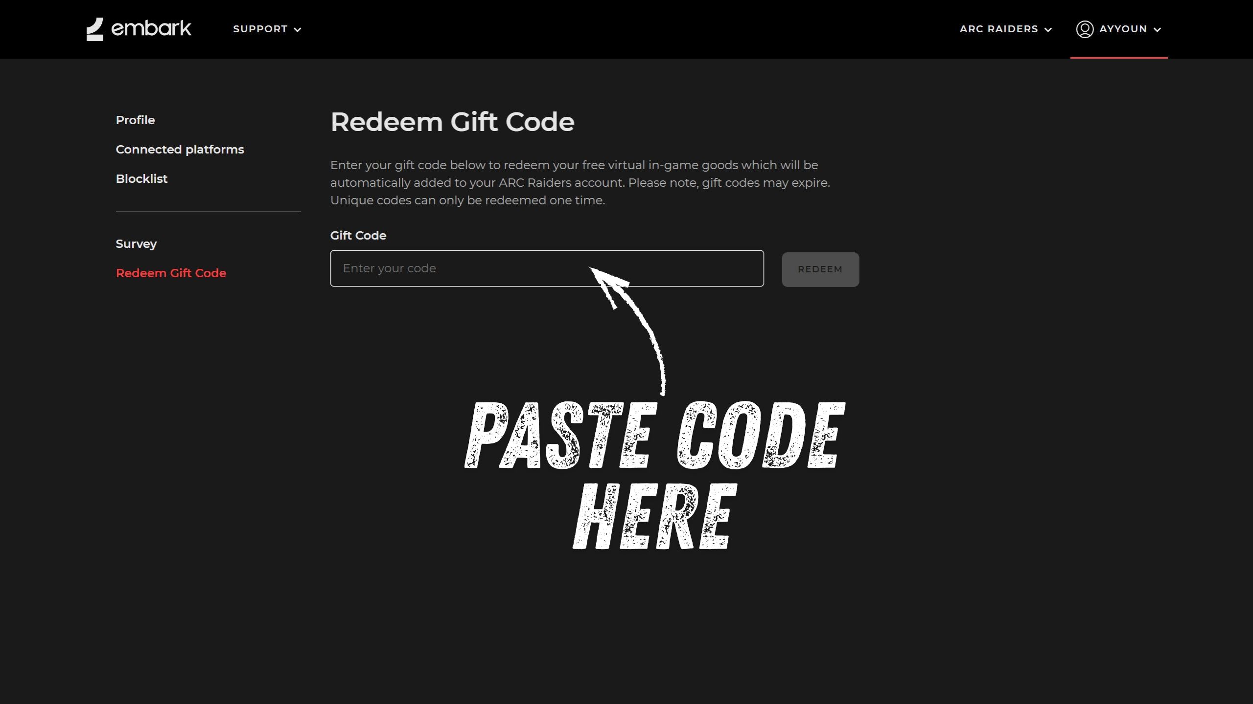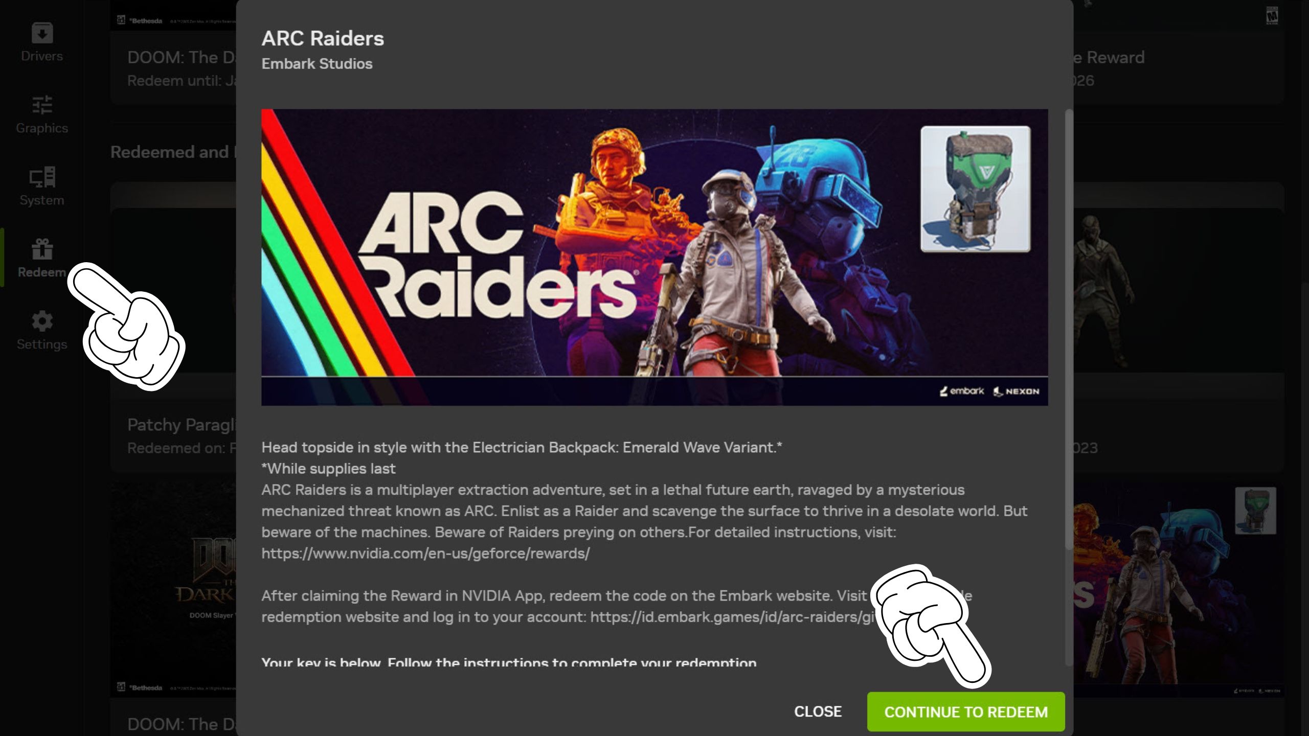 After you get your code for the ARC Raiders Nvidia backpack, go to the Embark ID portal. Just click the “Continue to Redeem” button in the Nvidia App to get there.
