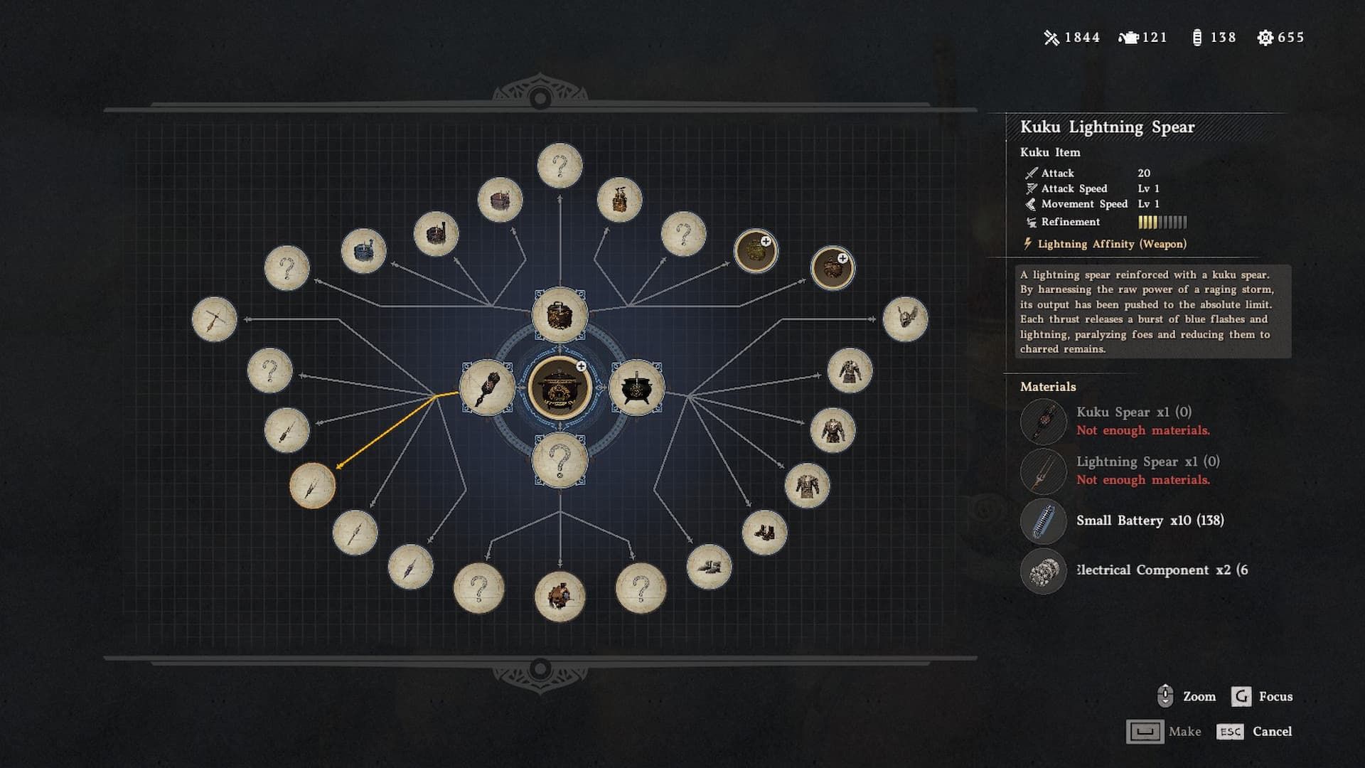 The Kuku Lightning Spear naturally increases your attack and movement speed. It also has a Lightning Imbuement, meaning each hit deals extra lightning damage, just like other lightning-based weapons. This spear holds a maximum of 10 lightning charges, and it gains one charge back every two seconds. Because spears attack quickly, you’ll likely use all 10 charges rapidly. Thankfully, the Kuku Lightning Spear recharges quickly enough that you’ll still have a powerful weapon overall.