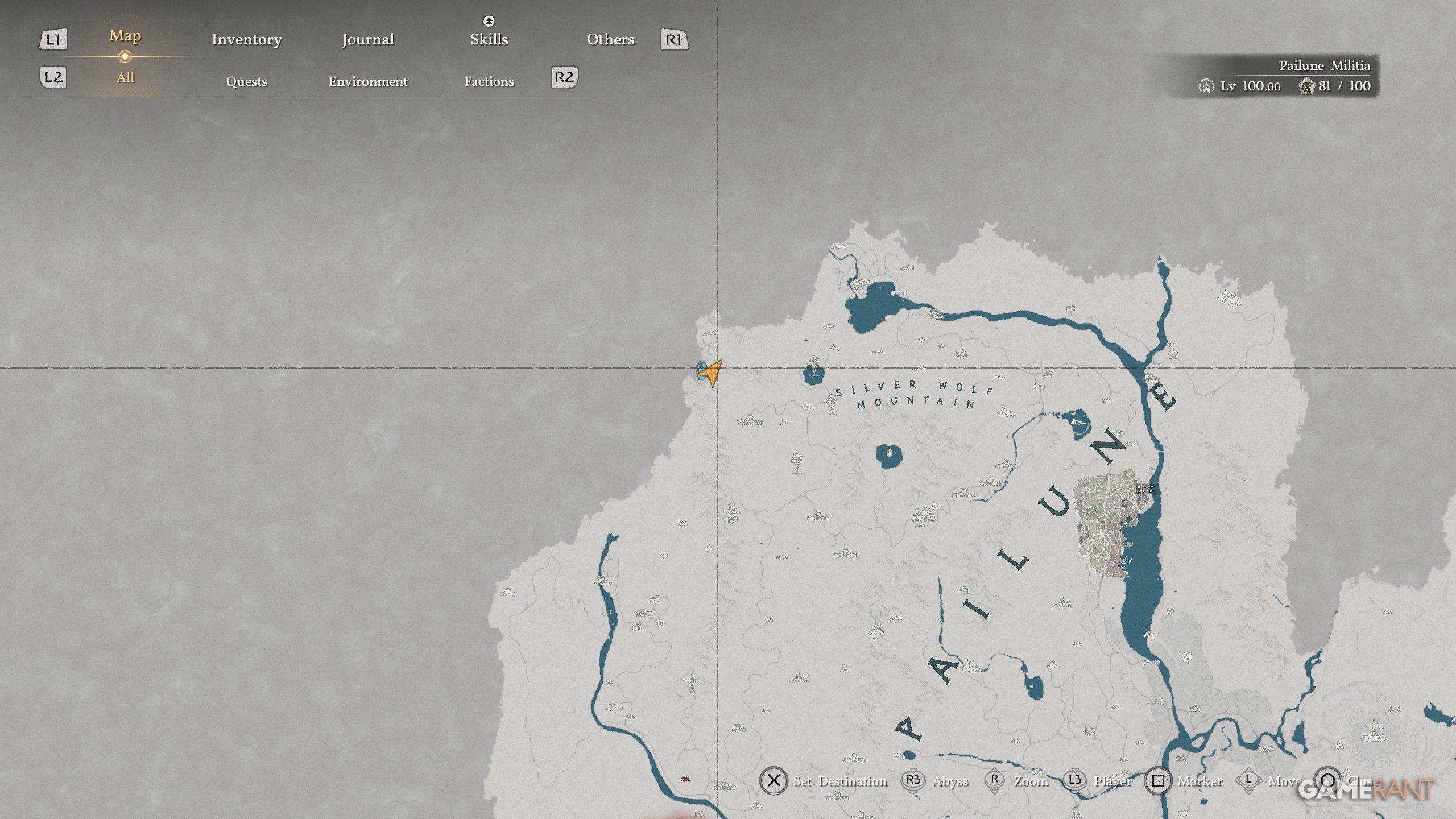- Venture west from the “S” in “Silver Wolf Mountain” to reach the Five-Finger Mountain.