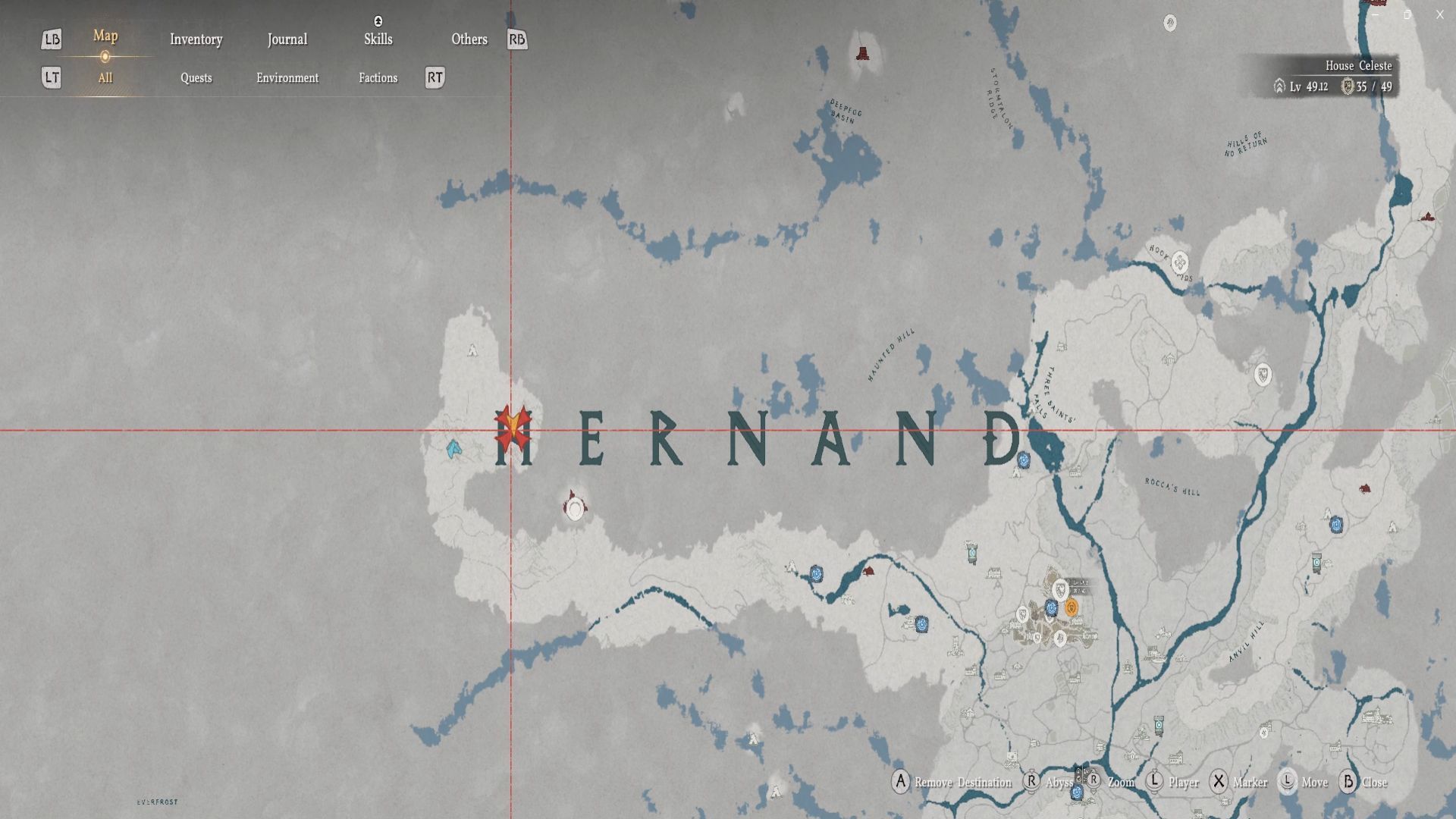You can find the entrance to the ritual ground on your map at the location marked with the letter ‘H’ in ‘Hernand’. It’s also indicated by the red X in the images shown.