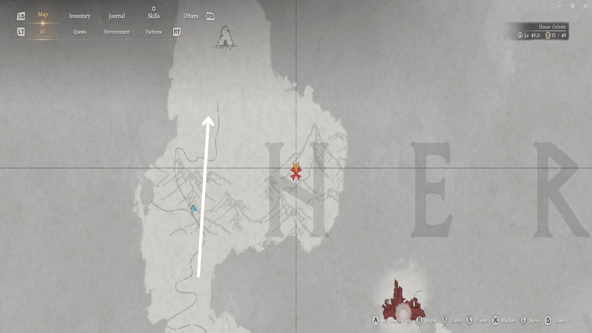 You can find the entrance to the ritual ground on your map at the location marked with the letter ‘H’ in ‘Hernand’. It’s also indicated by the red X in the images shown.