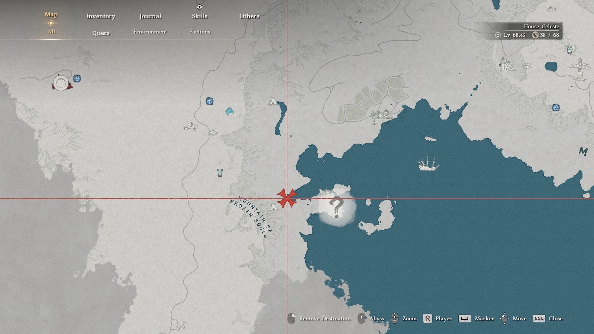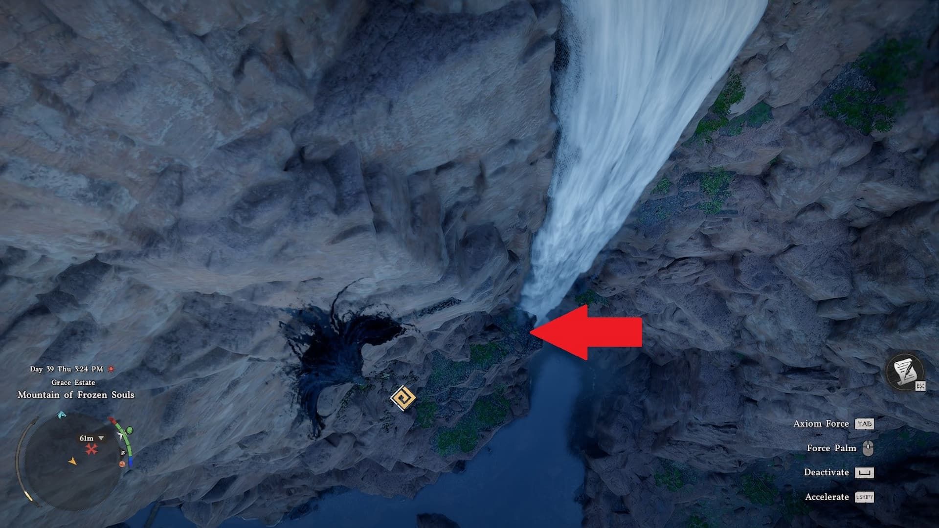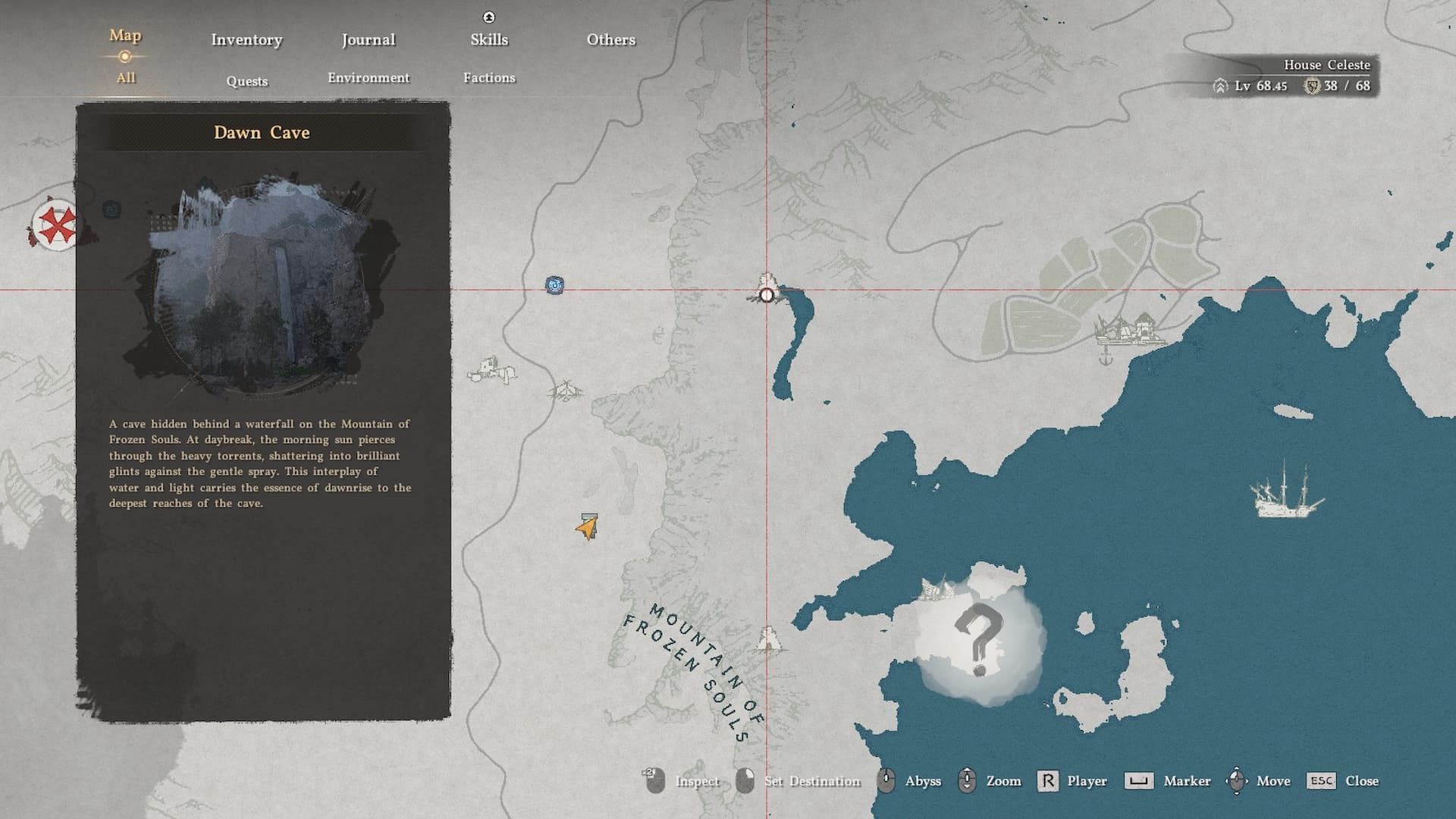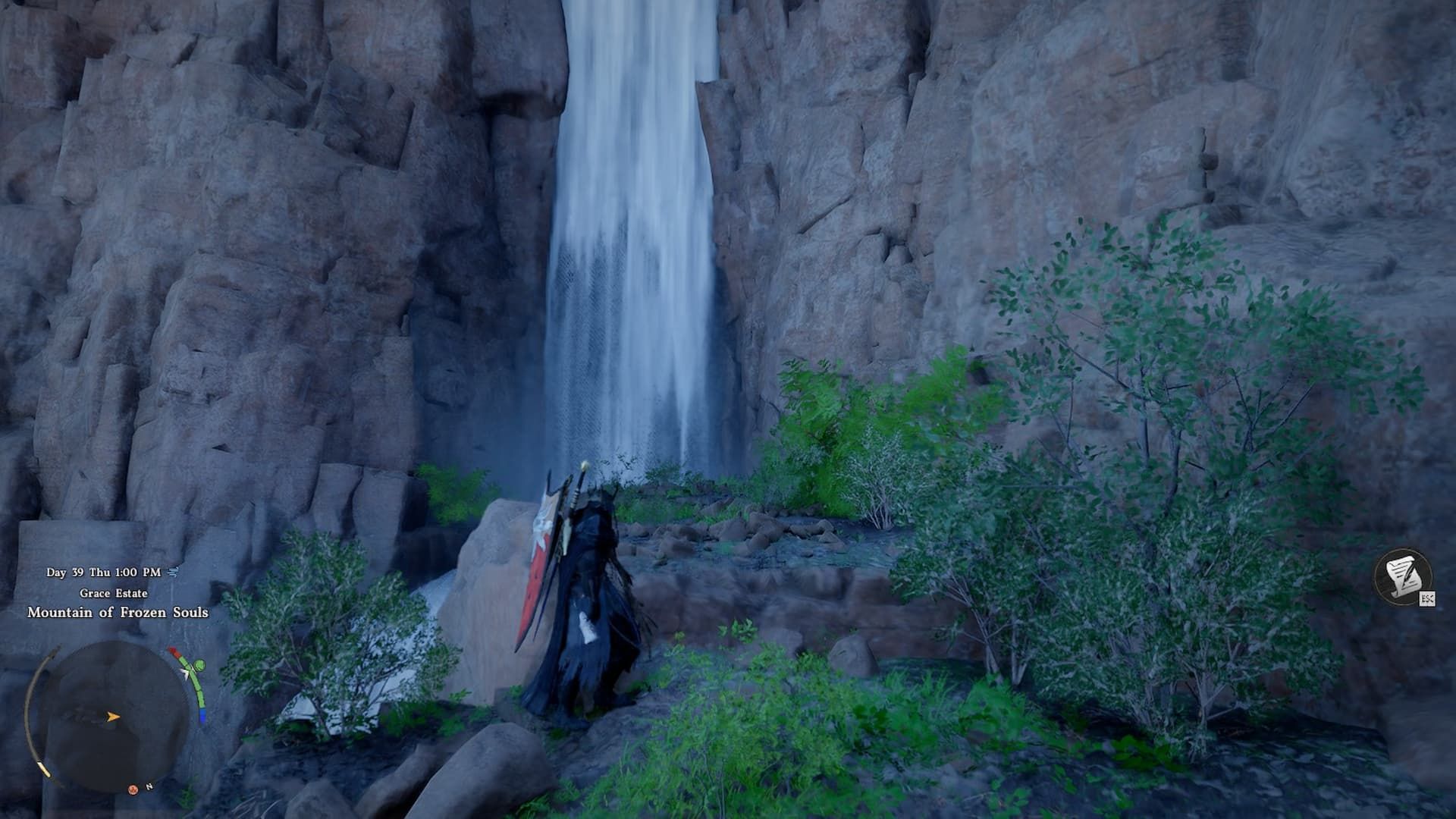One piece of this set is hidden inside a cave near the bay, east of the Frozen Mountain of Souls on the map. To reach it, approach the area from above and go to the base of the upper waterfall. You’ll need to break through the water to enter the cave, where you’ll find a valuable collection of items.