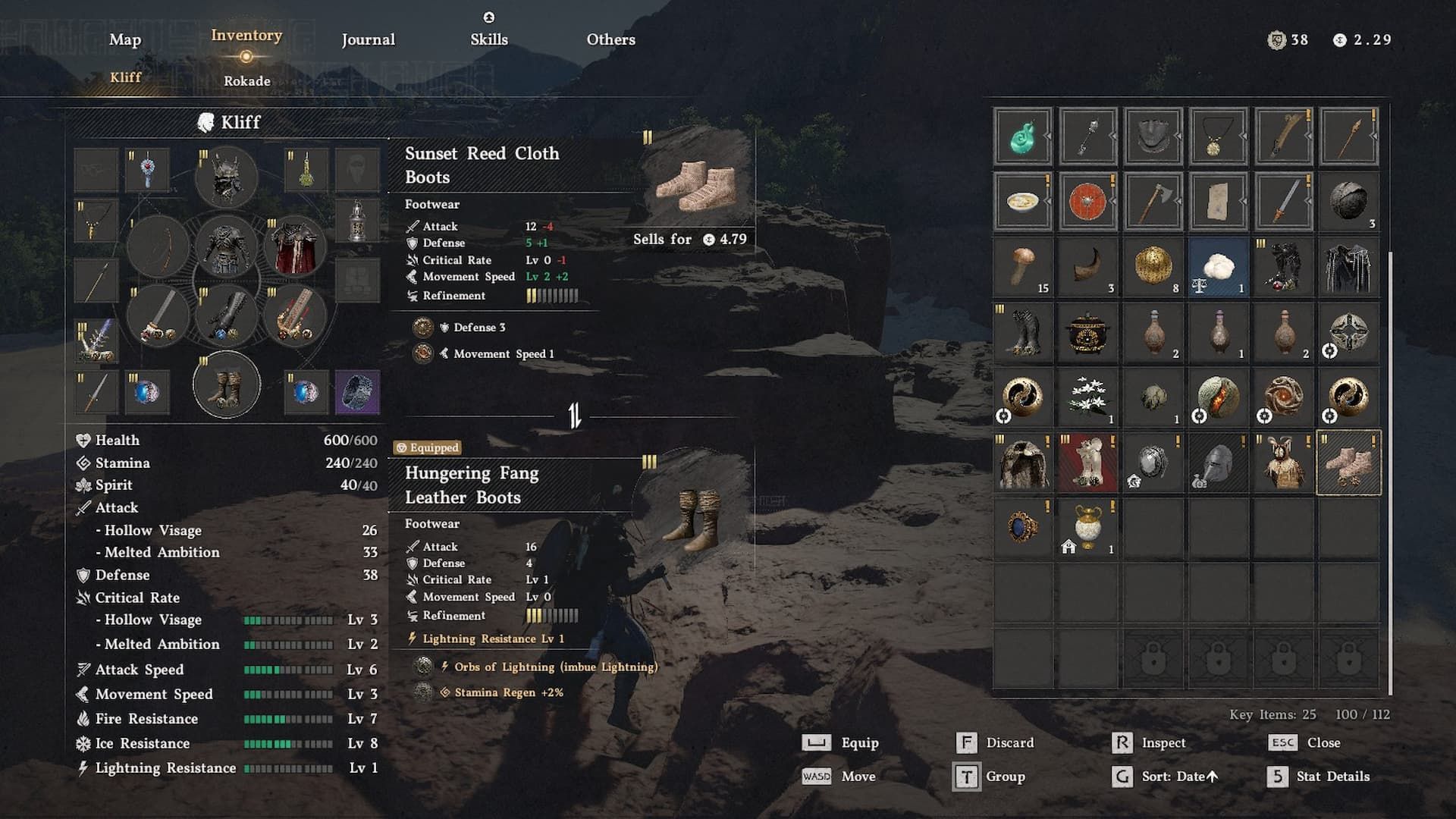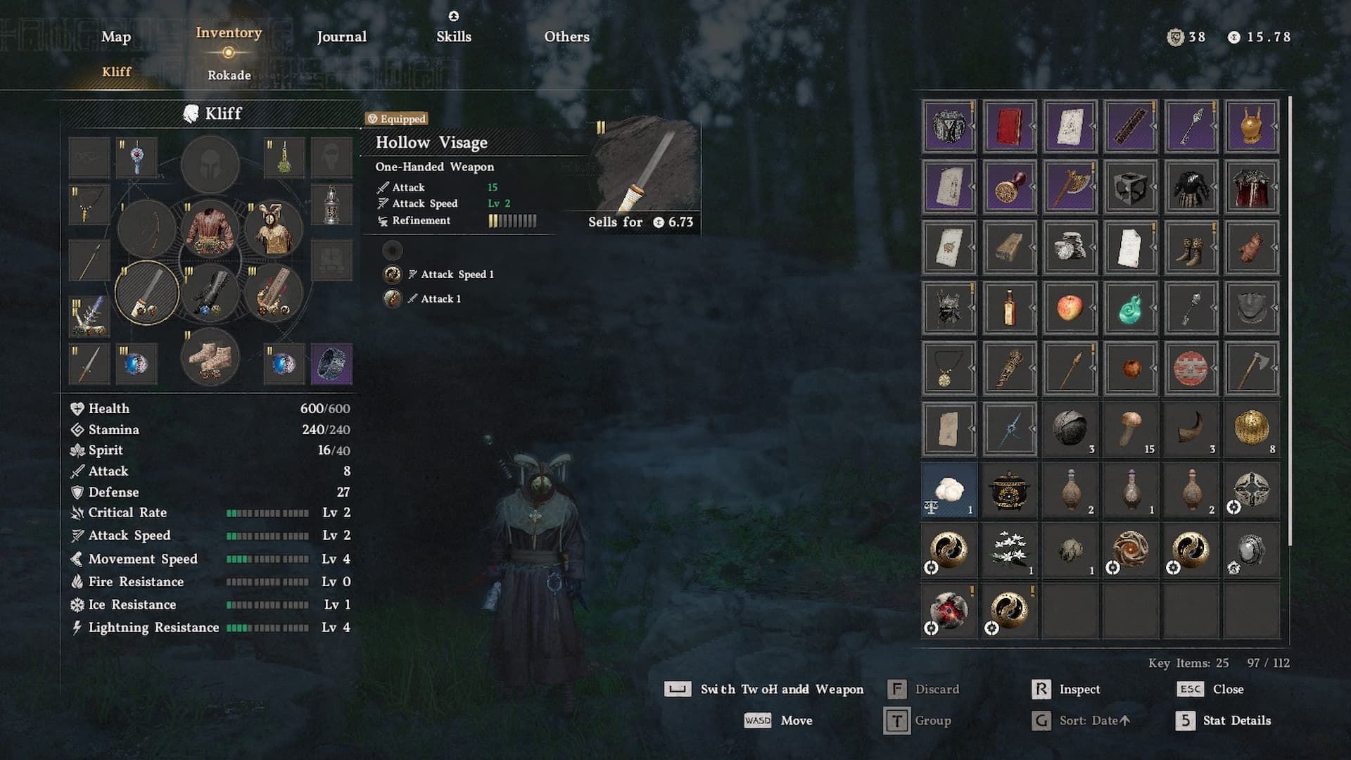 Hollow Visage starts with three built-in upgrades that boost your attack power, speed, and chance to land critical hits. It’s a solid weapon to use early in the game, and it becomes even stronger as you improve it. You can customize it by swapping out these upgrades at witch hideouts. We suggest removing the Critical Rate upgrade and replacing it with something that adds more direct attack power or a special effect – for example, you can get a useful upgrade from the Sword of the Lord dropped by Hornsplitter.