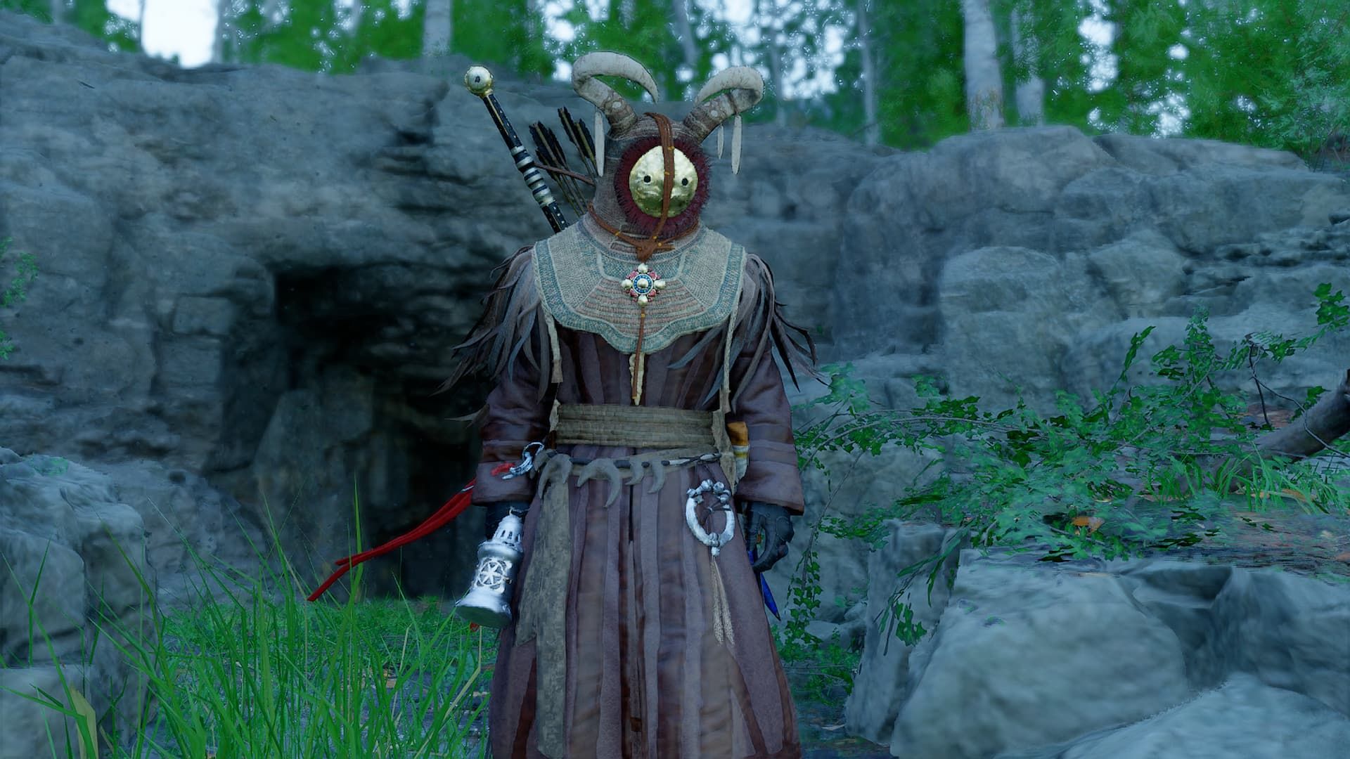 Okay, so I finally found the Reed Devil’s cloak and helmet! It’s hidden in this unmarked ruin just west of the Spire of Insight. When you go inside, you’ll see a locked gate with a chest right behind it. The trick to opening the gate is super simple – just light both of the braziers that are next to the stairs. Then the gate opens and you can grab the loot!
