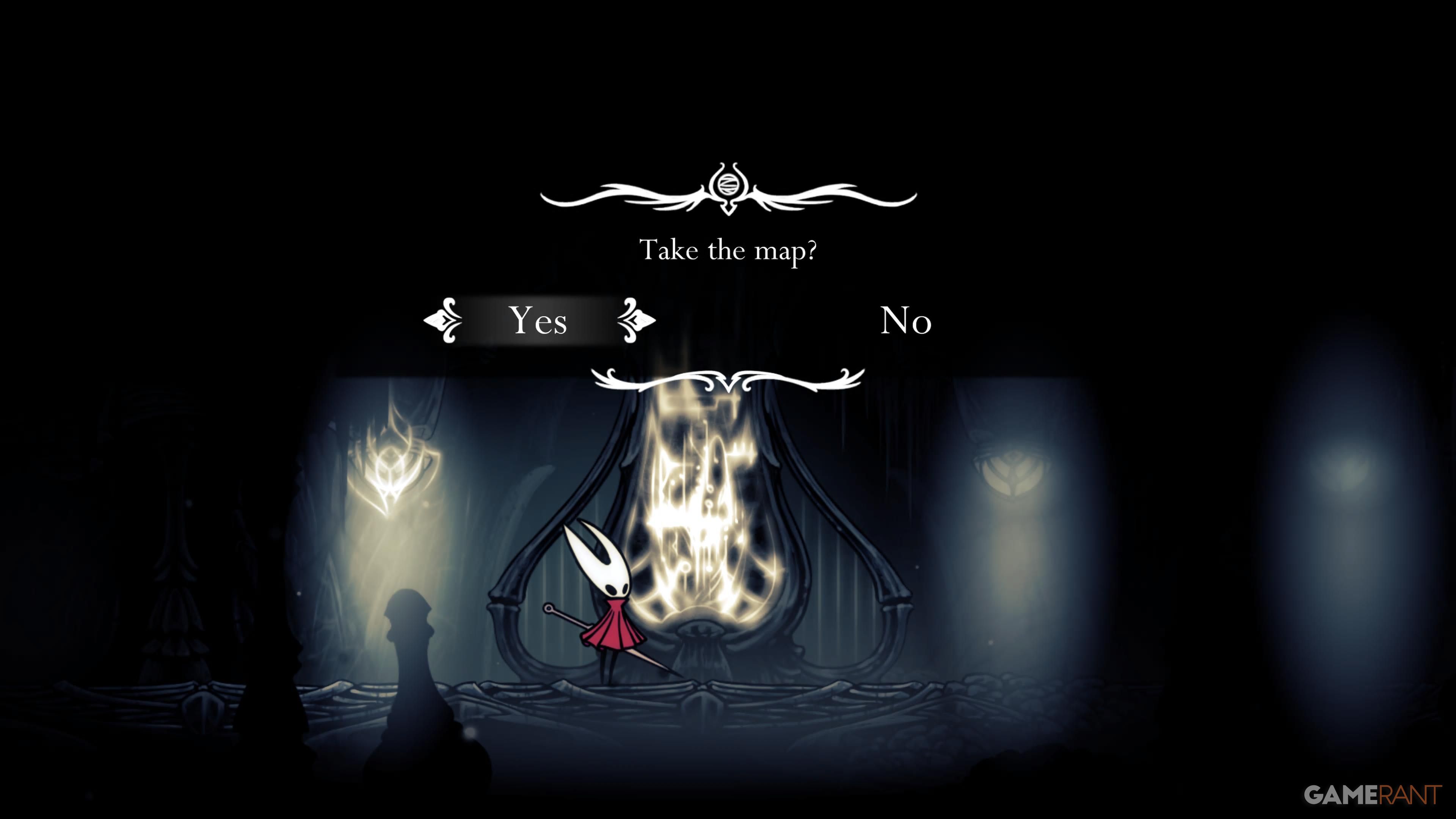 The map for Weavenest Atla isn’t too distant from where you begin. Once you’ve passed through the door, simply continue straight and veer right to discover two luminous cylinders that you can strike. This action will initiate the room’s mechanism, causing you to descend to the lower part of the region. But prior to your descent, take a moment to engage with the rune tablet, as it contains the map. This area is rich in collectibles, including a Spool Fragment, Mask Shard, a boss lurking in one corner, and an NPC who can enhance your Hunter’s Crest.