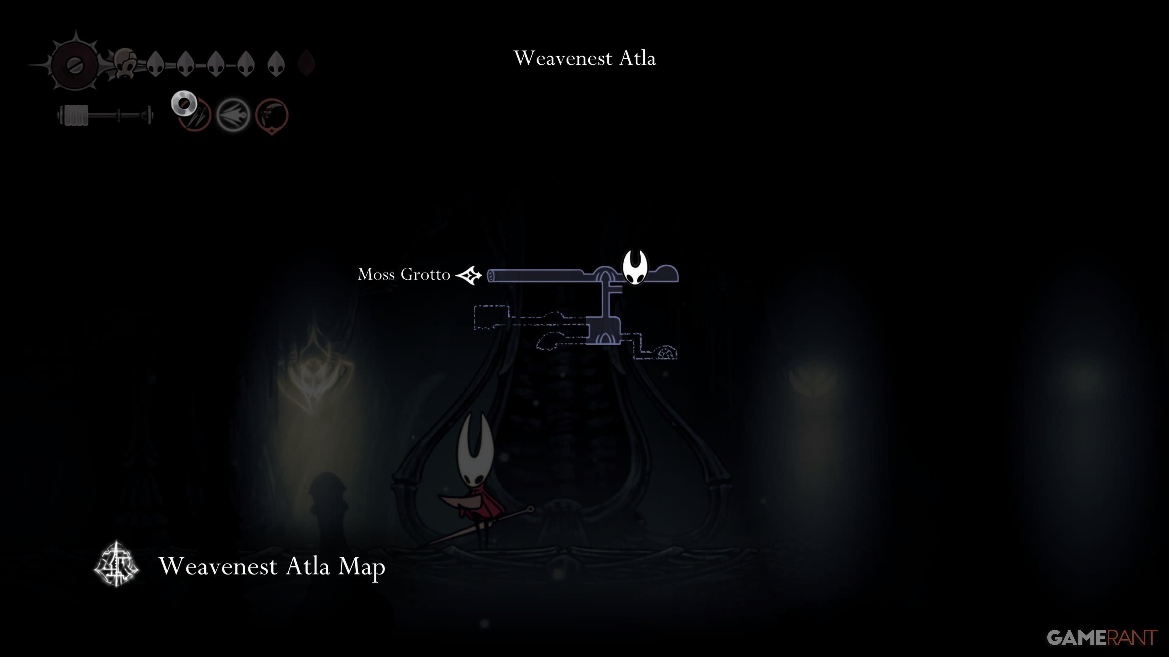 Proceed to Bellway Station, then quickly teleport to Bone Bottom. After that, veer left and descend into Moss Grotto. To locate a substantial woven-shaped entrance you can open currently, navigate towards its right side. Once near the door, press ‘Triangle’ or ‘Y’ on your controller (or ‘D’ if using keyboard) before stepping through it to enter Weavenest Atla.