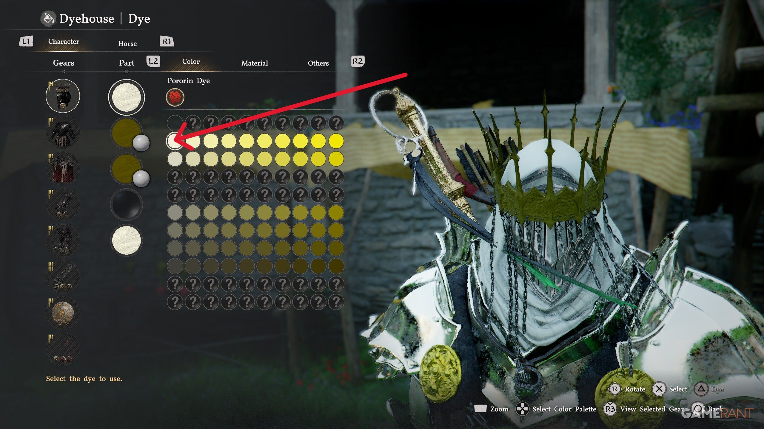 - For the white dye, you need to select the top left dye under Pororin Dye.
