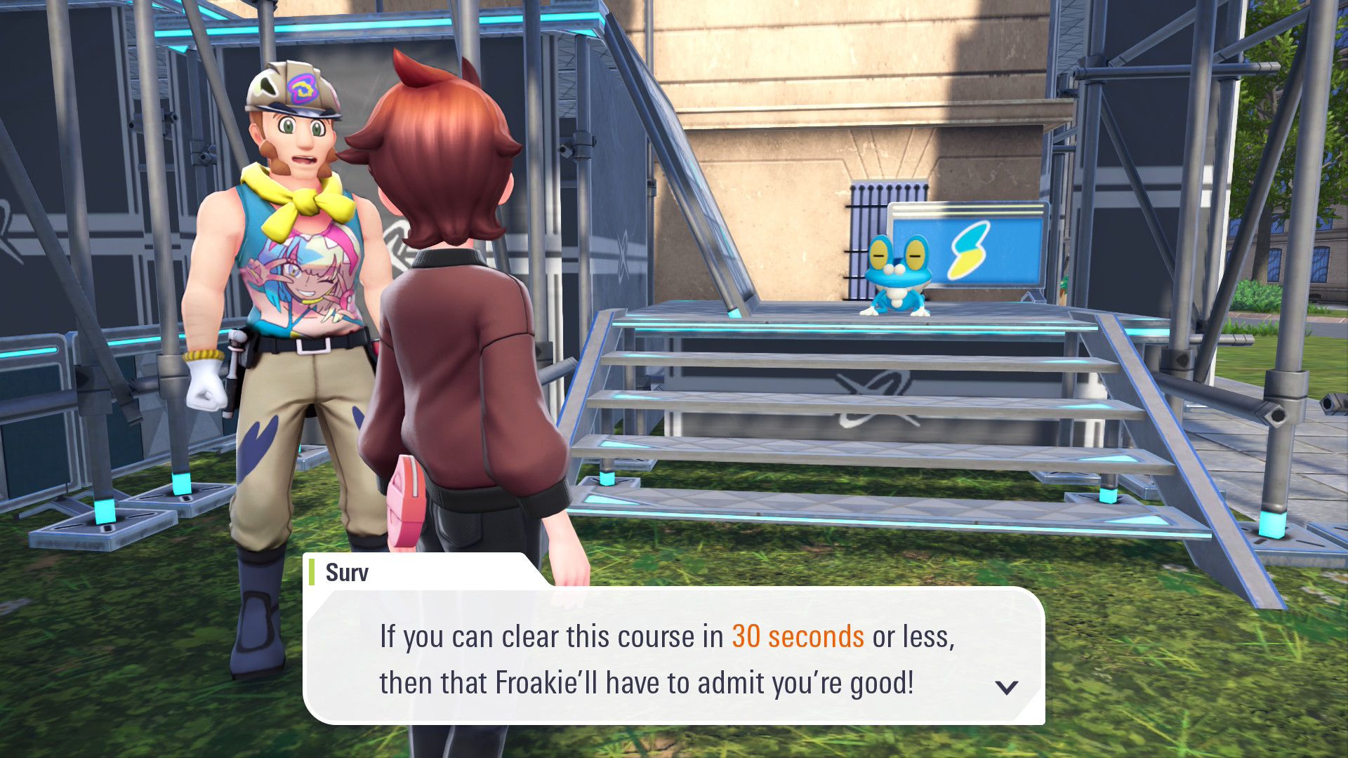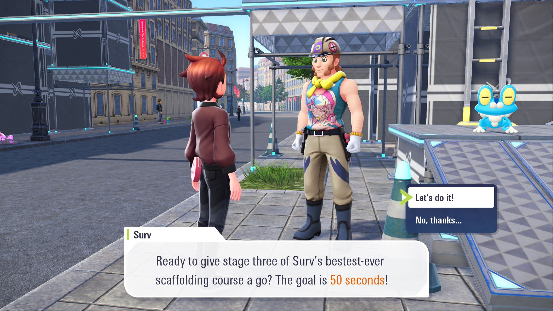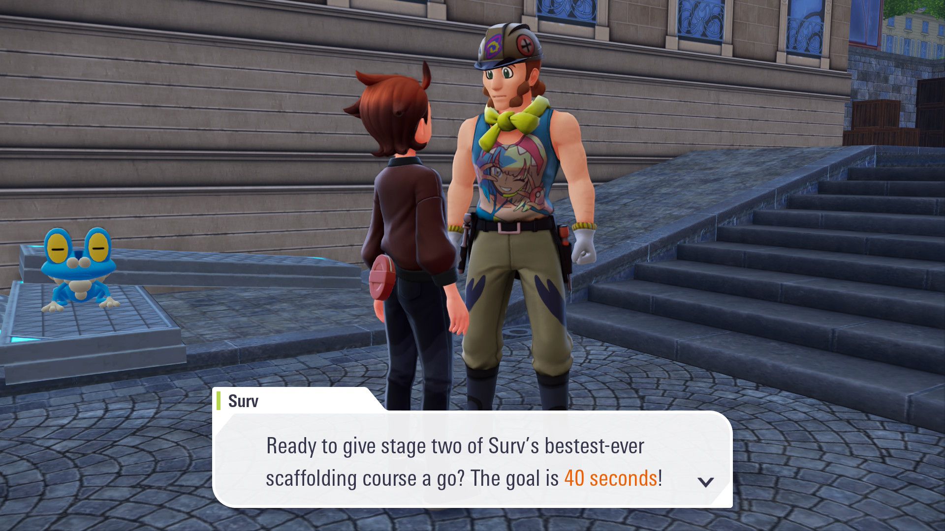 Speak with the construction site manager, and you’ll discover that the Froakie beside them holds the record for completing three different scaffolding obstacle courses. If you accept the challenge to beat its time, you’ll start the quest ‘A Challenge from Froakie’ in *Pokemon Legends Z-A*.