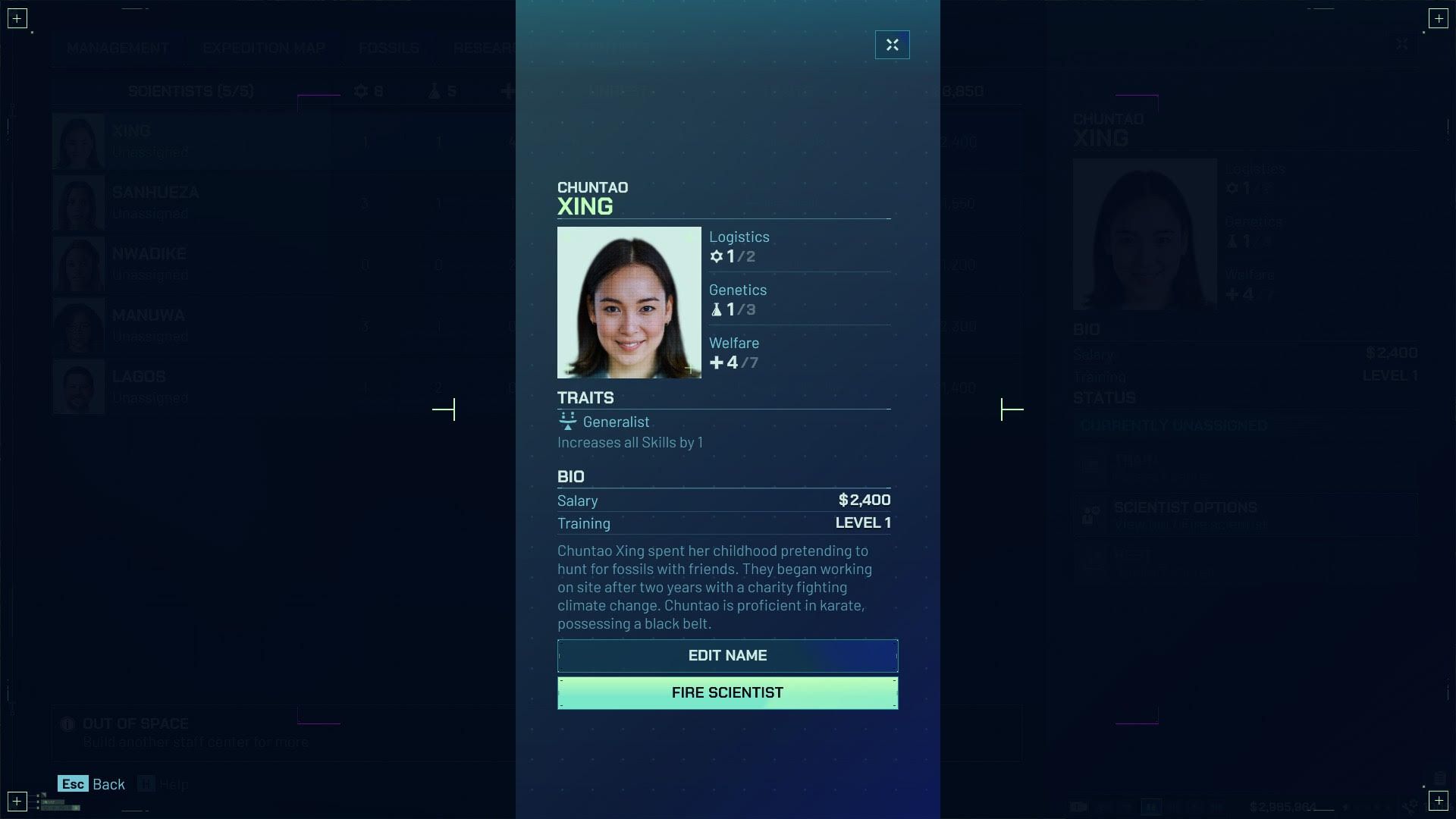 When you fire a scientist, they’re gone for good and can’t be brought back. This opens up a space on your team, allowing you to hire a new scientist who might be more skilled, have better qualities, or be easier to train.