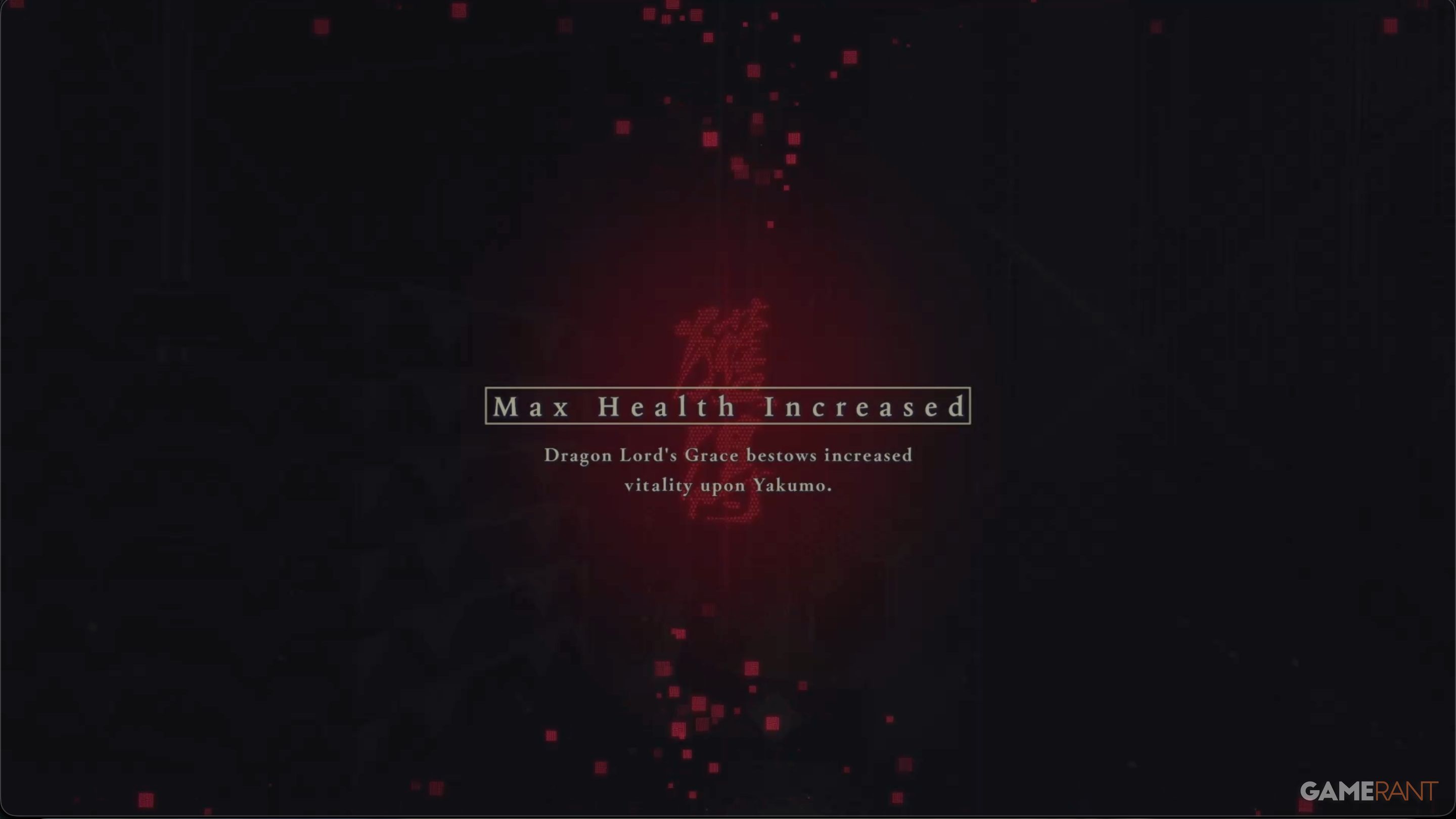Creating a Dragon Lord’s Grace automatically gives Yakumo a small health boost. Based on in-game information, you can increase his maximum health a total of ten times. This suggests there are ten Black Scales and ten Phantasmal Herbs to find.