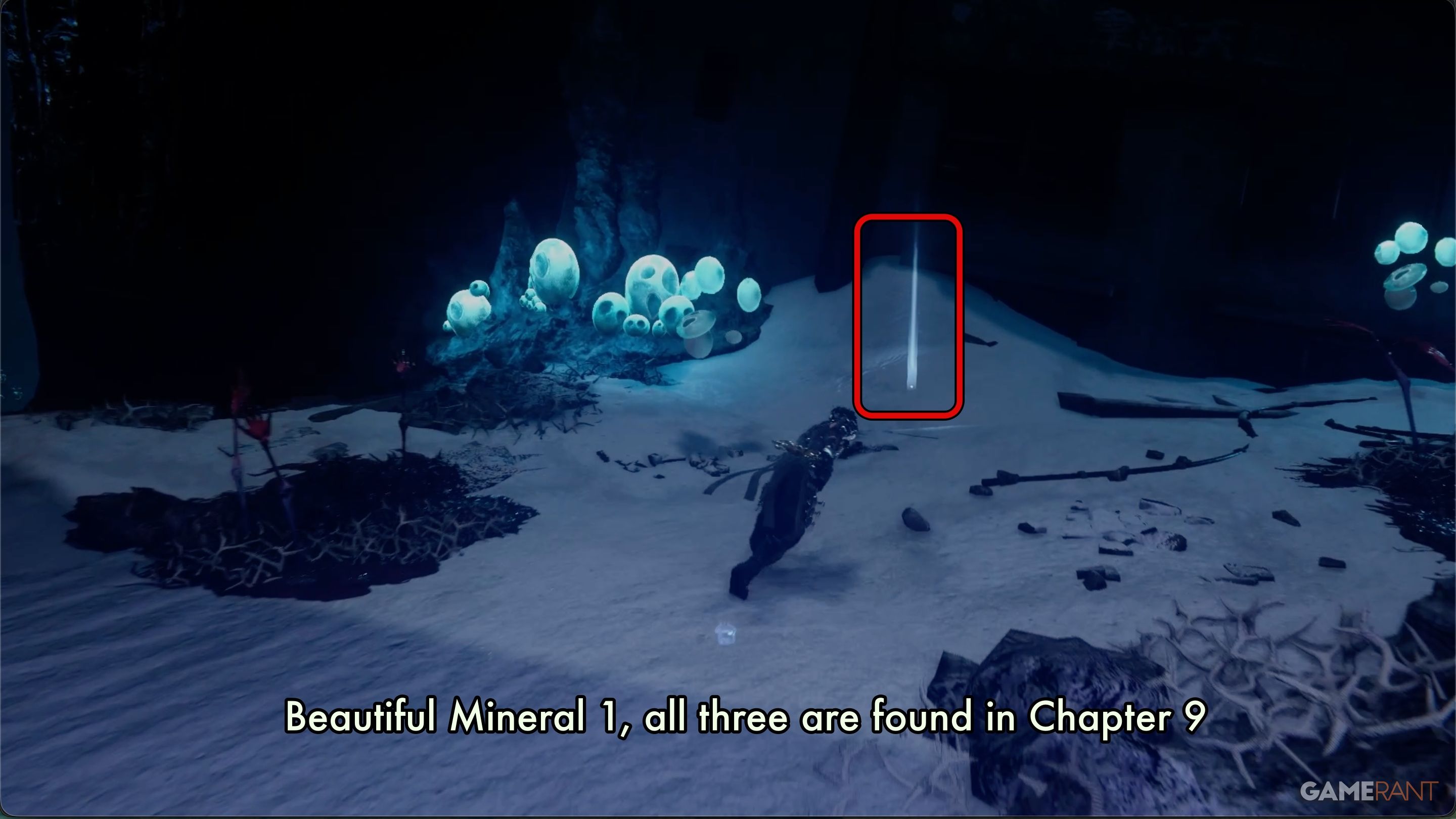 Phantasmal Herb 6 | Chapter 9: Find all 3 ‘Beautiful Minerals’—these are items spread throughout Chapter 9. All of them are found in chapter nine, so make sure to thoroughly explore each area. They are always out in the open, marked by pillars of light like non-chest mission items. |