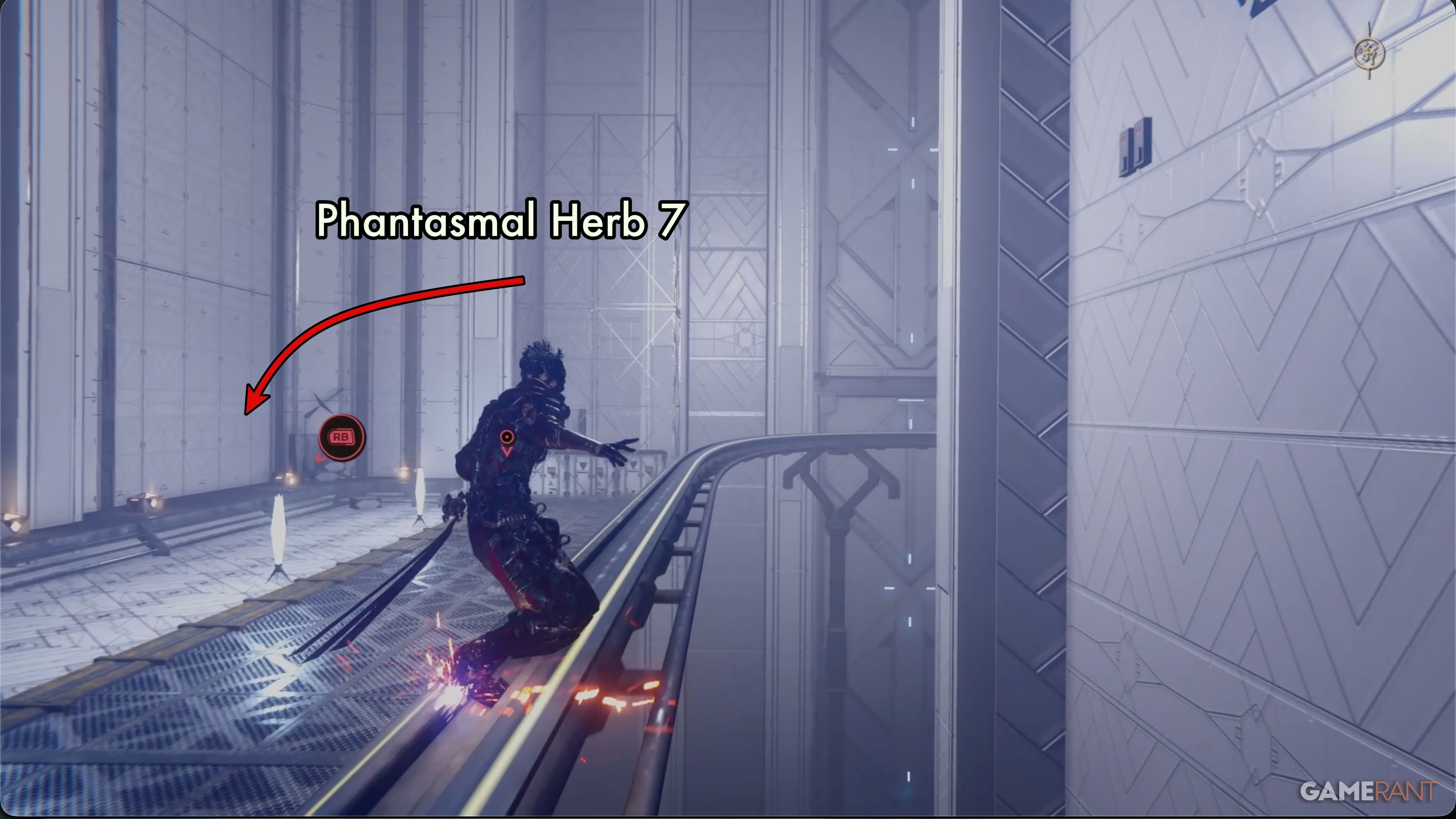 Phantasmal Herb 7 | Chapter 11: As you make your way through the first stage of the Dragon’s Maw, you’ll find yourself riding on rails. This herb is found in a chest on a platform off to the left of a rail. Just before you jump on the correct rail, you’ll climb a large wall with E-4 printed on it. The rail has a blue speed-boost ring as soon as you jump on it. After jumping on the rail, you’ll have to jump over several obstacle rings, then slide under one of the gates. Immediately after sliding under the gate, you’ll see the platform off to the left. Jump to it, defeat the enemies, then open all chests. |
