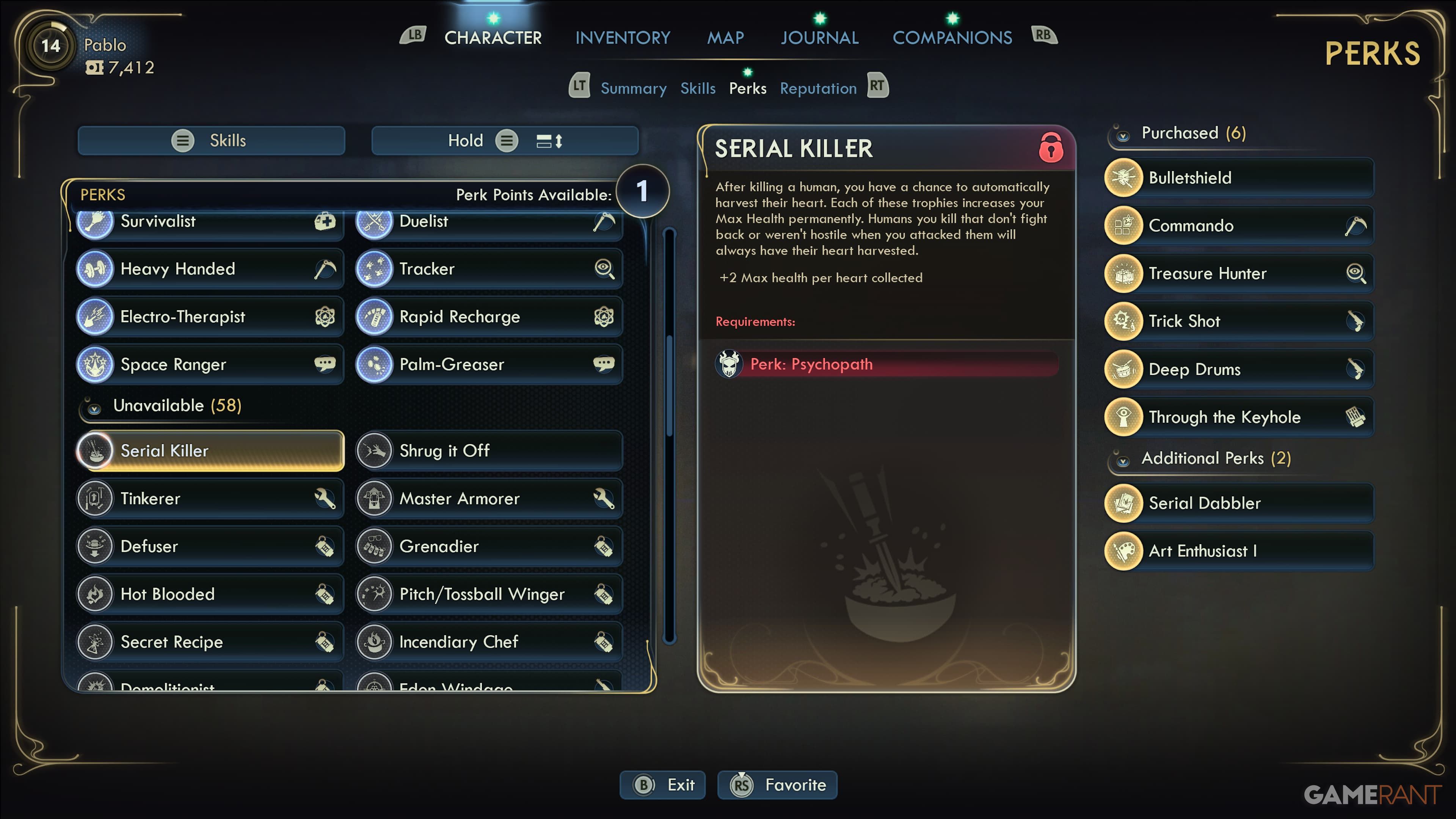 The Serial Killer perk needs you to first unlock the Psychopath perk. That makes logical sense, considering the nature of being a serial killer.