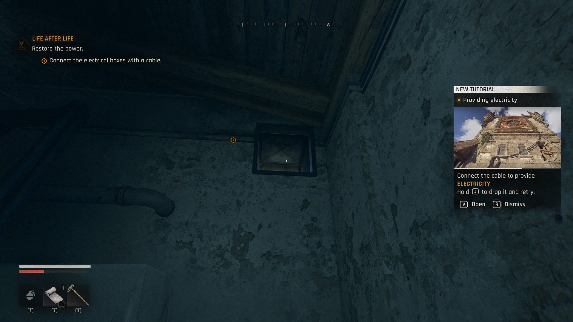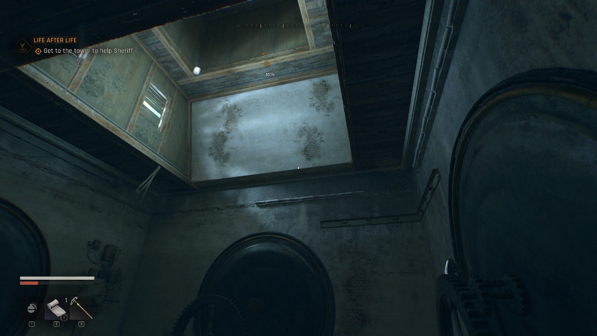 Head towards the quest marker, which will lead you to the town hall. But first, it’s a good idea to check out the rooftops and attics – you might discover a better weapon to help you get started in *Dying Light: The Beast*.
