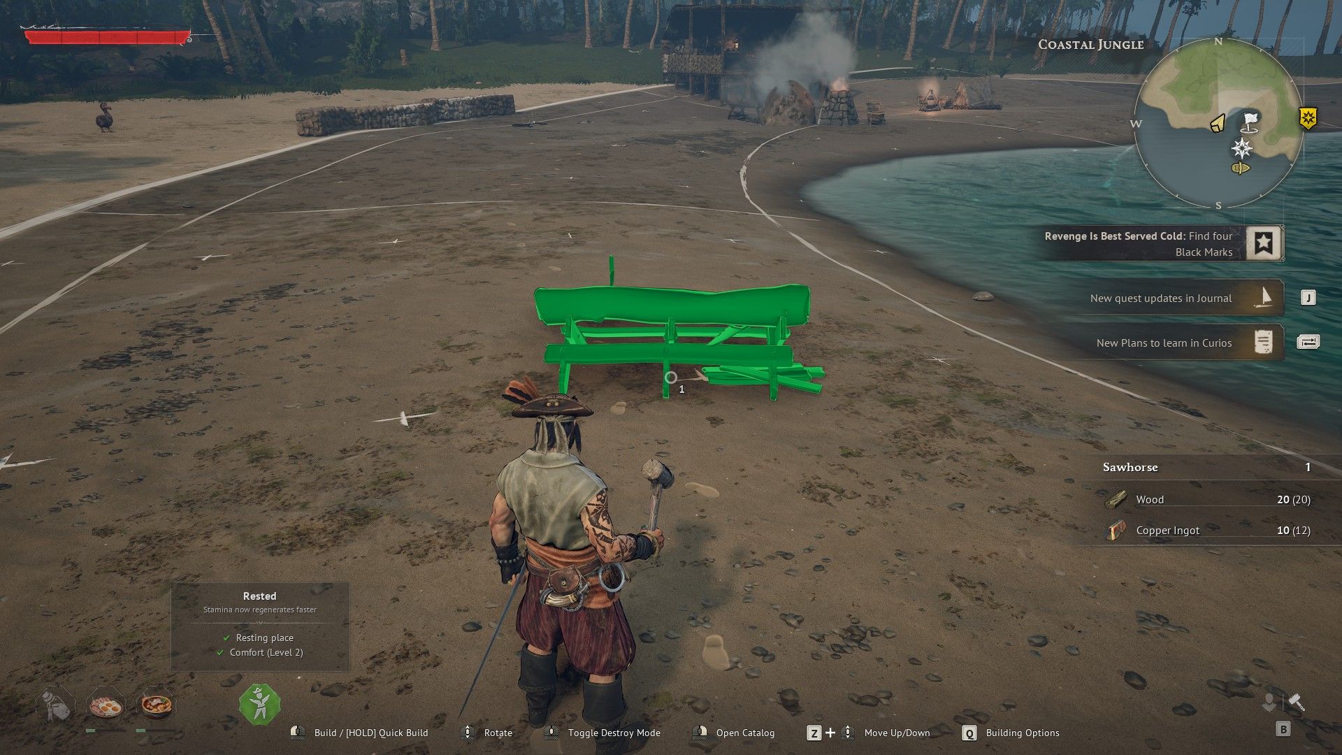 Okay, so crafting stations need extra bits to upgrade. Like, if I want to level up my Workbench in Windrose, I have to build a Sawhorse first. It’s similar to how it works in Valheim, but what’s neat about Windrose is I don’t have to build the add-ons right next to the station I’m upgrading. As long as they’re within range of the same Bonfire – that’s what I’ve found with the Workbench, anyway – it works perfectly!