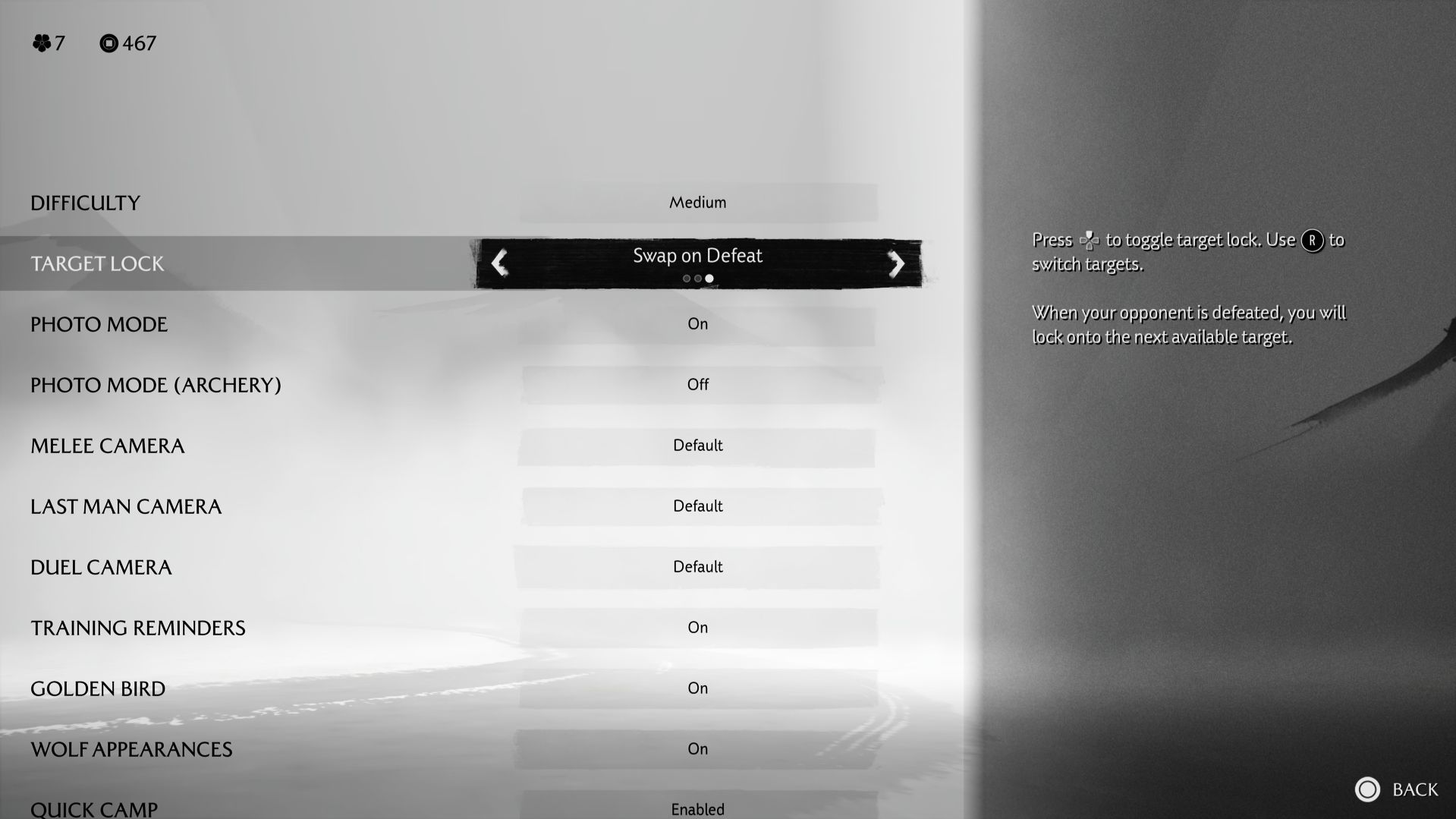 You have three options here: Disabled, Enabled, and Swap on Defeat. The Disabled option does exactly what it sounds like. If you choose Enabled, you’ll have to manually select a new target after defeating your current one. Swap on Defeat automatically switches your lock-on to the next enemy, which is really useful during fast-paced fights. But be careful – it could lock onto the wrong enemy at a bad time, like when another is about to attack you.
