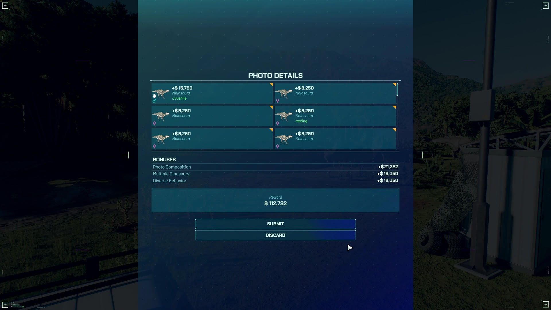 Your ranger teams can also work as photographers to earn extra money. Driving a ranger vehicle into a dinosaur enclosure lets you take photos that sell immediately. How much you earn depends on things like how many dinosaurs you photograph, the different types of dinosaurs, and what they’re doing in the pictures.