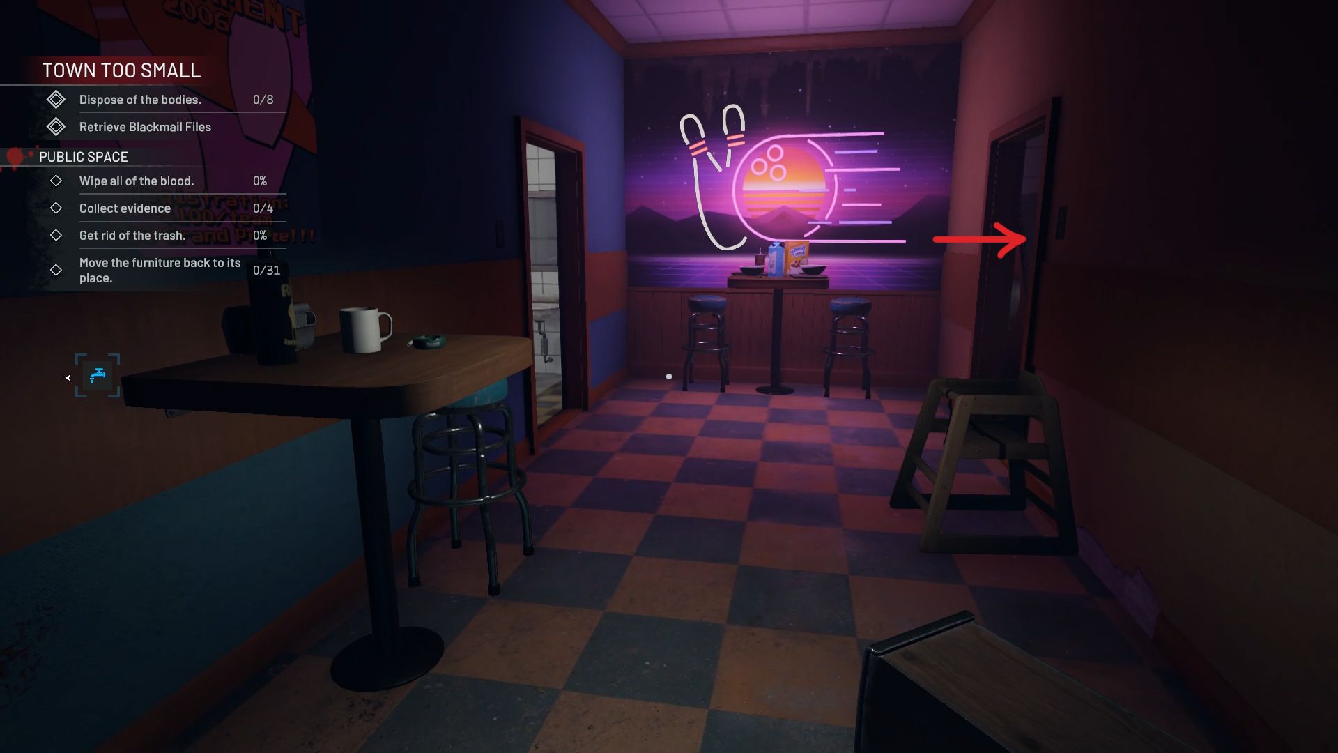 A hidden room inside the level contains a CD located on the Town Too Small stage in Act 2 of Crime Scene Cleaner. Once you find the cassette, finish cleaning the area to trigger the ending with Big Jim.