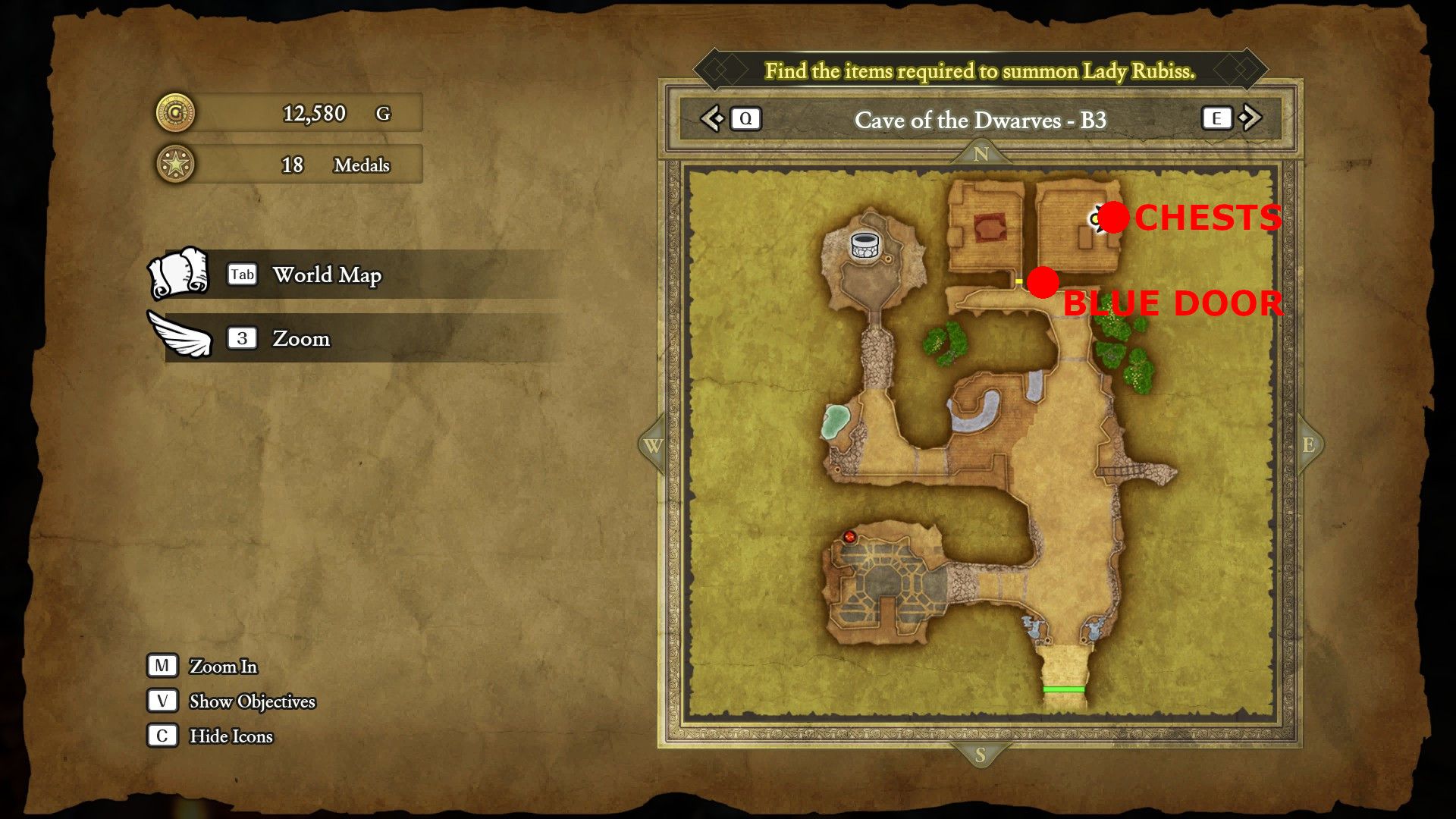 A second red door is located in the Caves of the Dwarves on level B1, and it leads to the rest of the dungeon.