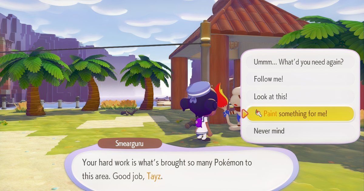 In Pokopia, players unlock the painting feature by progressing through the story. After meeting Smearguru, who explains how it works, you’ll be able to create paints and use them to customize buildings and decorations.