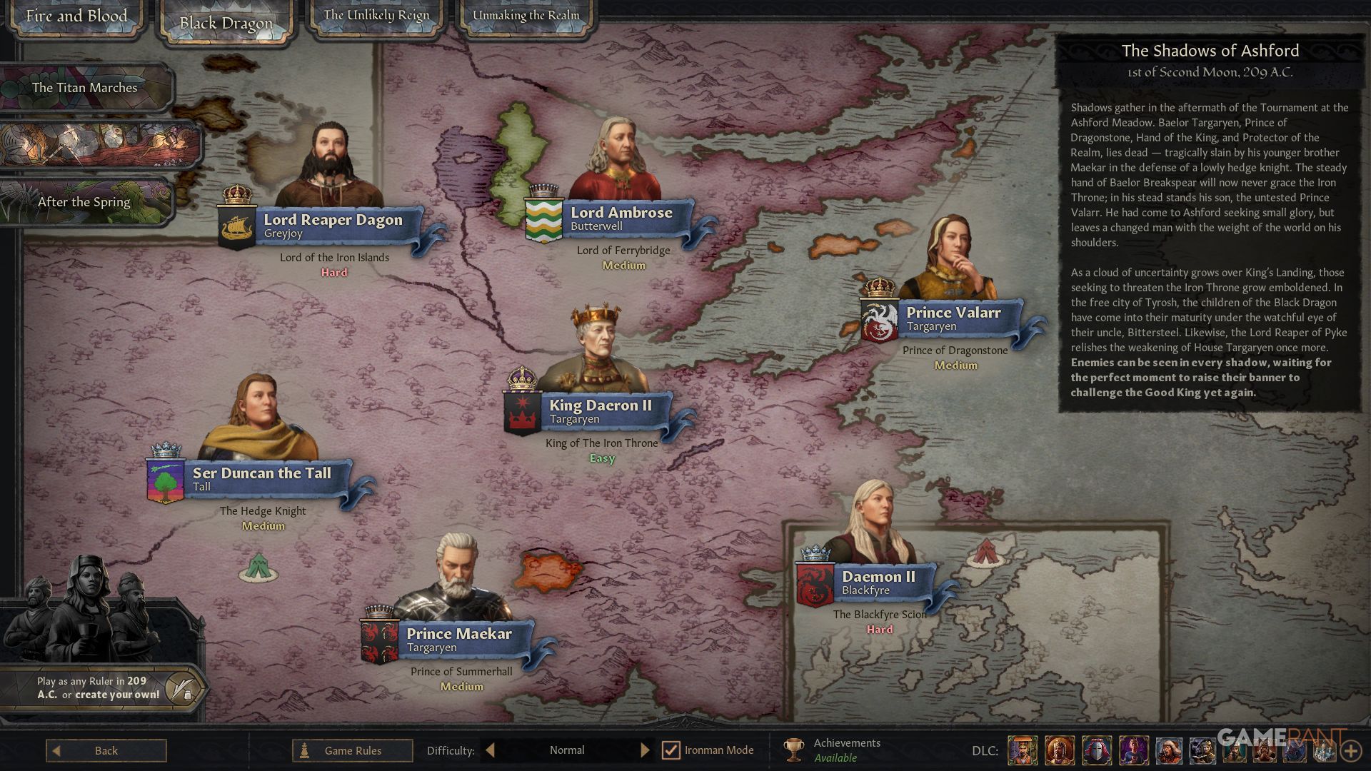You might recognize some characters, like Prince Maekar, but be sure to select Ser Duncan the Tall to begin playing.
