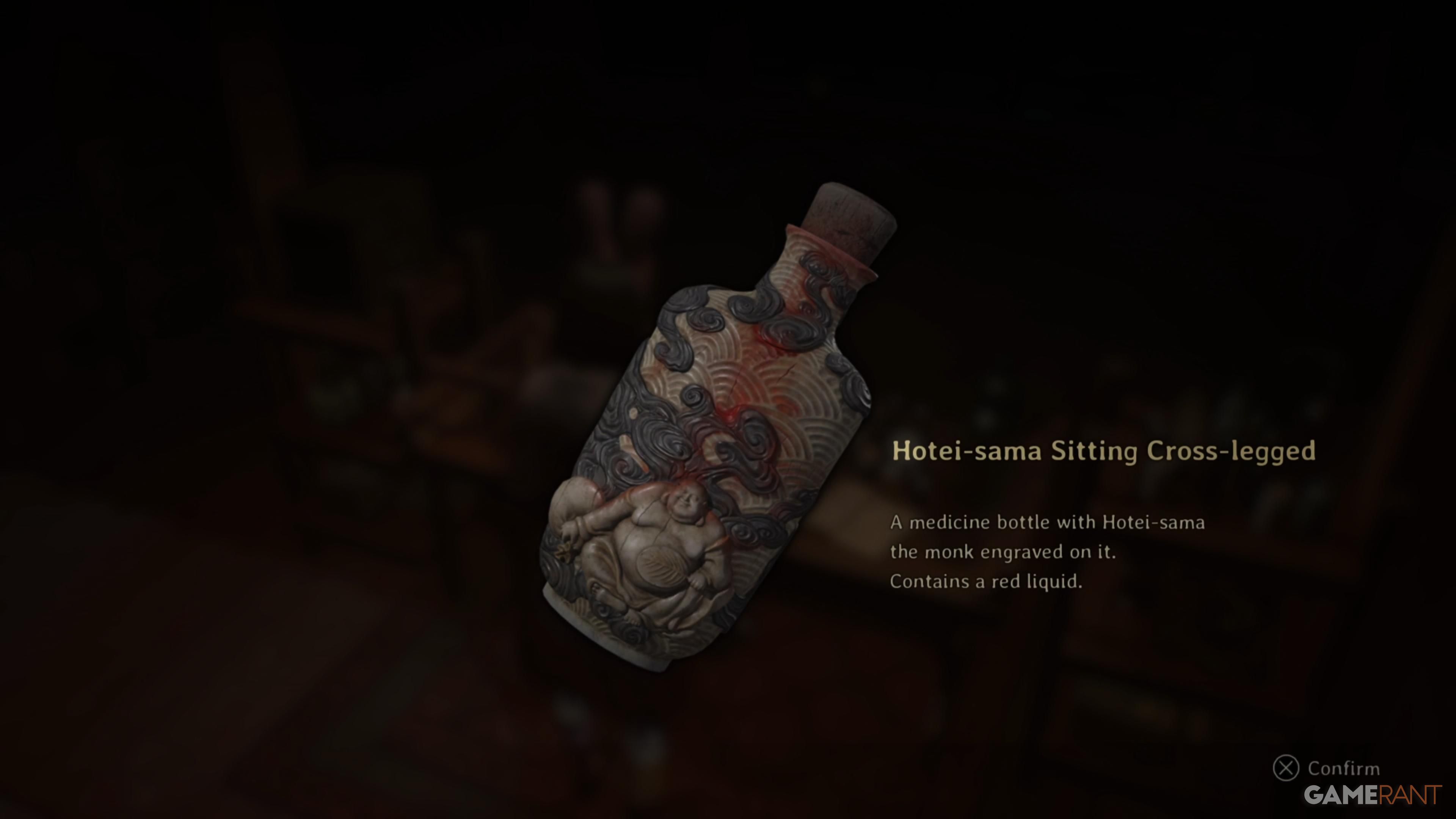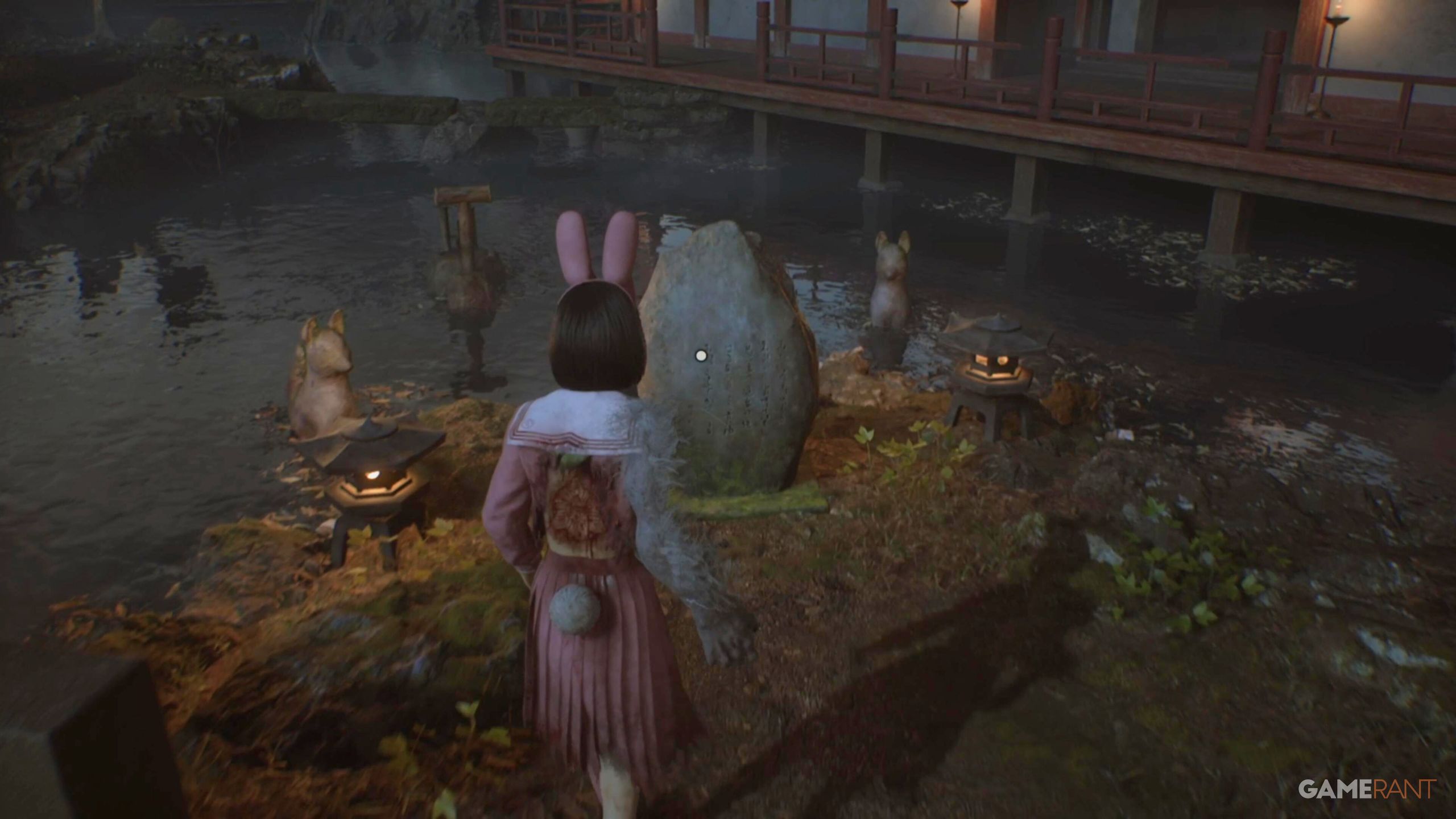 Before you try to solve the puzzle, go up the path on the right. This will take you inside the building. Once inside, you’ll find a character upgrade to your left, and the important item, Hotei-sama Sitting Crossed-legged, which you need to get Ending 2, Fox’s Wedding.